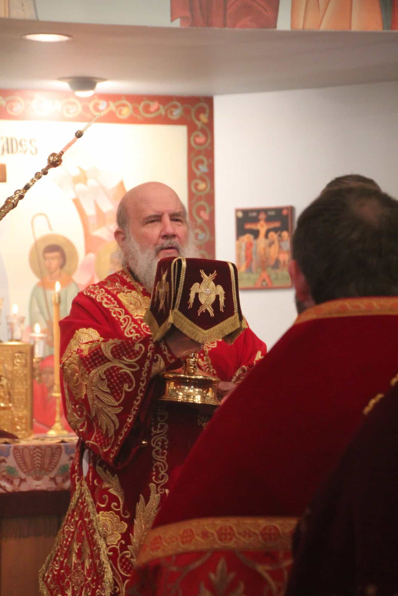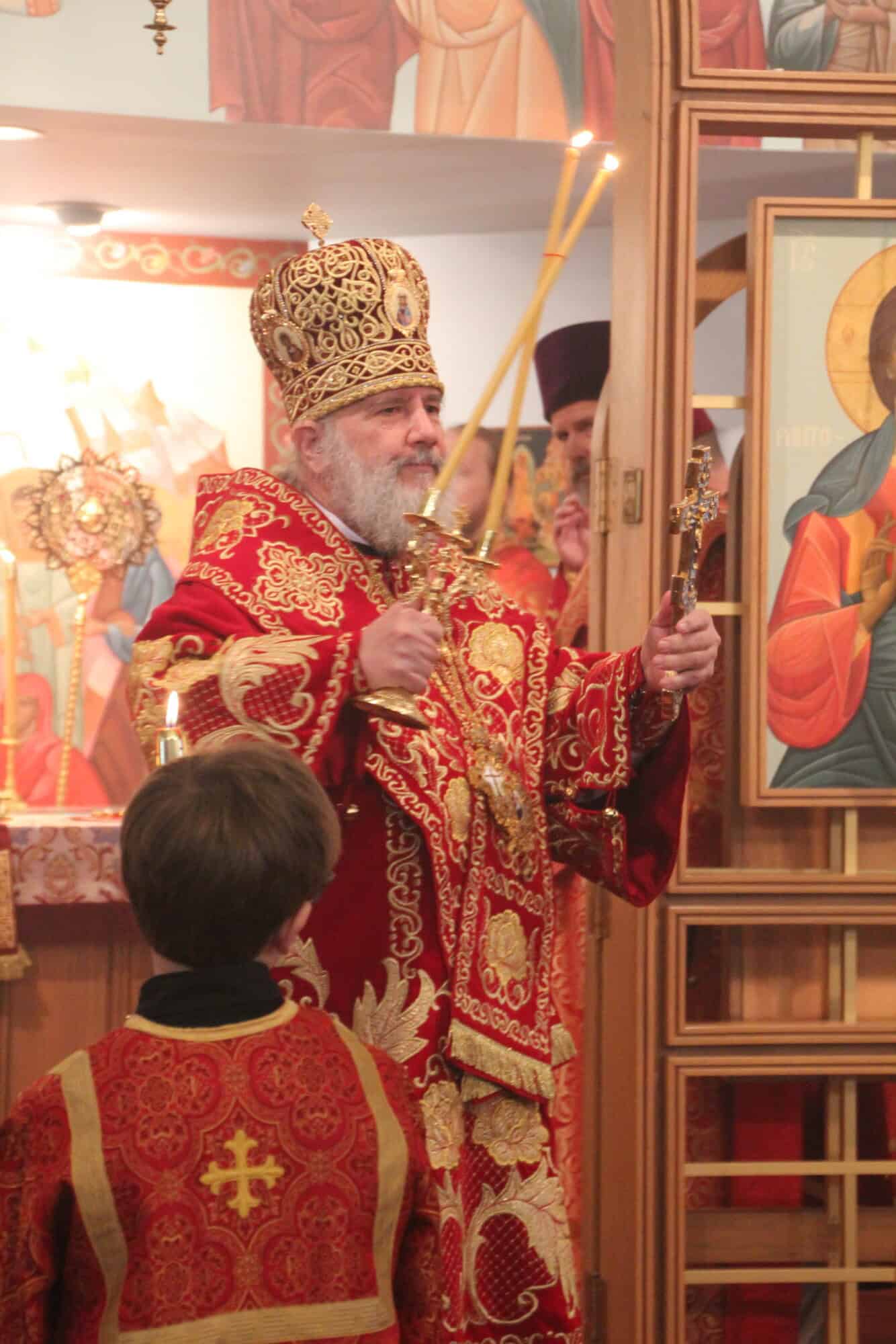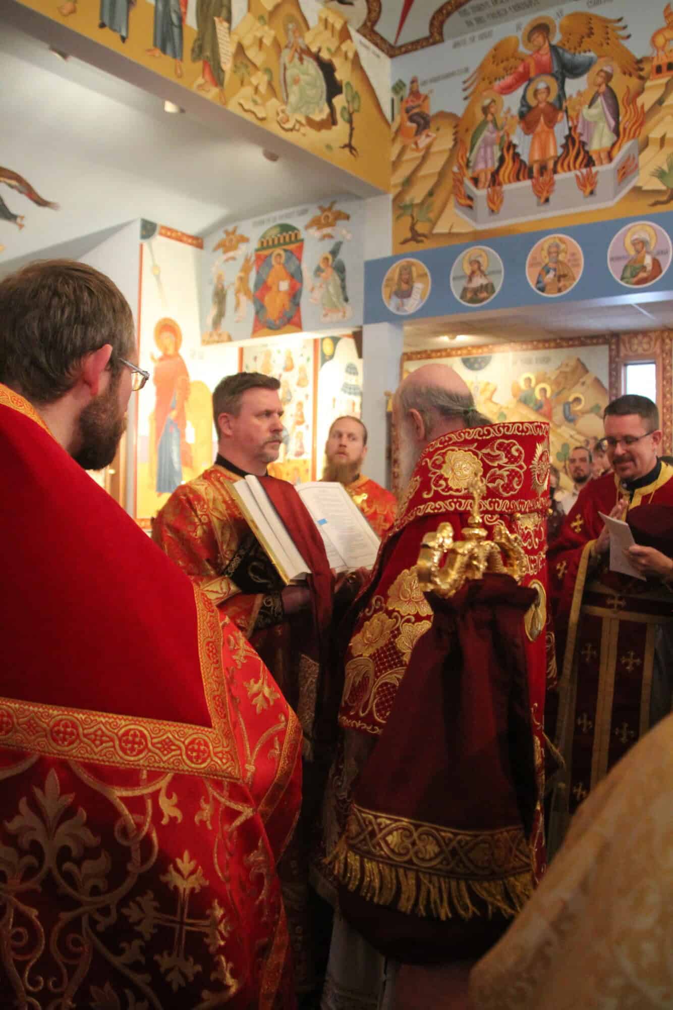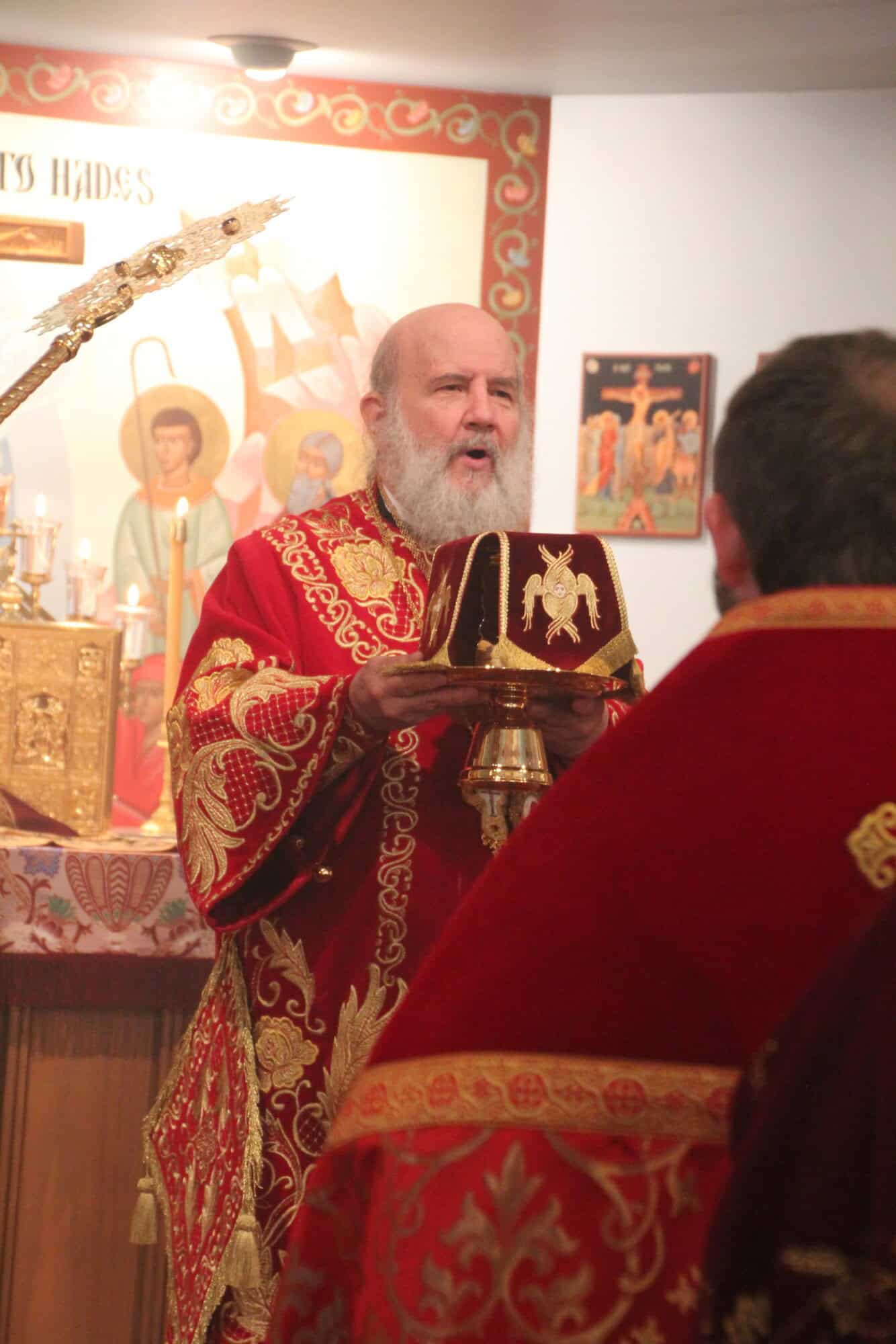 The following day, His Eminence celebrated the Divine Liturgy and was accompanied by Archpriest Herman Kincaid, Priest Mark Therrien, Archpriest Andrew Clements, Archpriest Ilia Marzev, Priest Paisios Hamann, Protodeacon Samuel Slimak, Deacon Matthew Kaminsky, and Deacon Noah.
