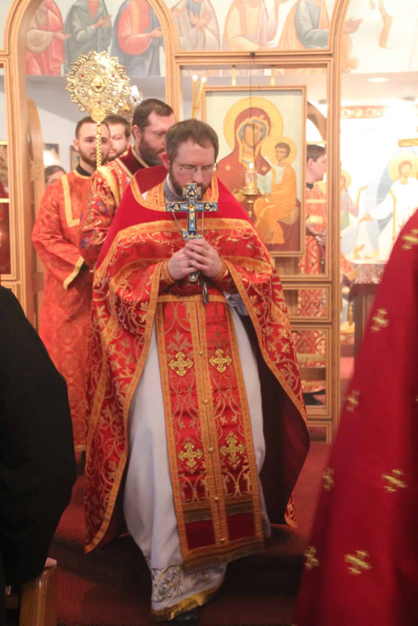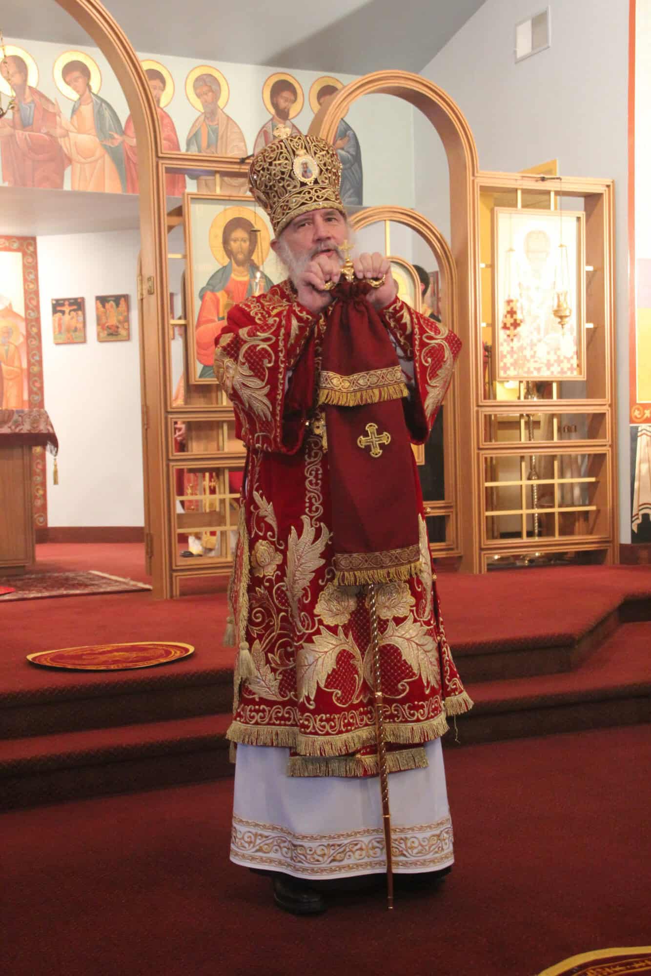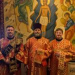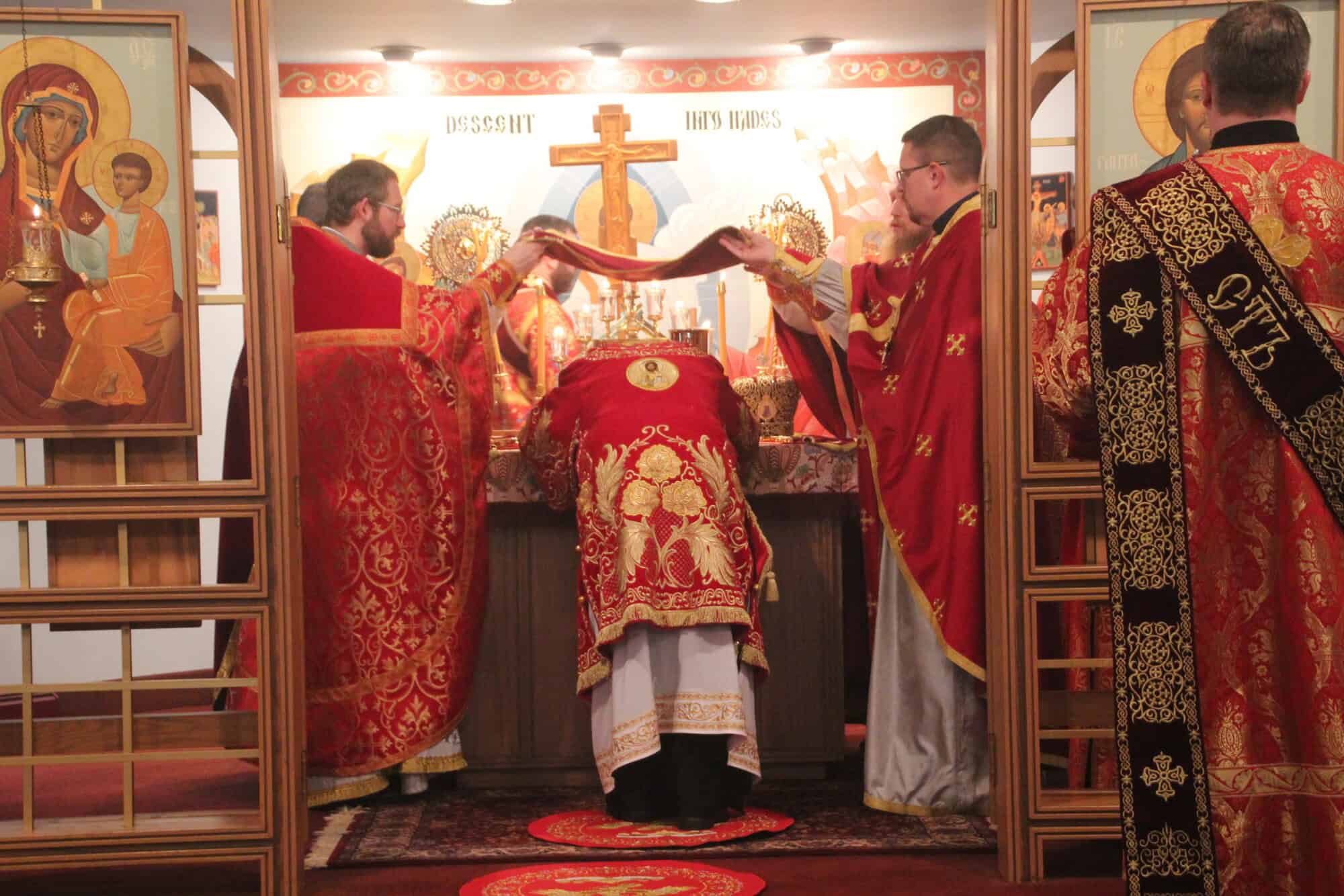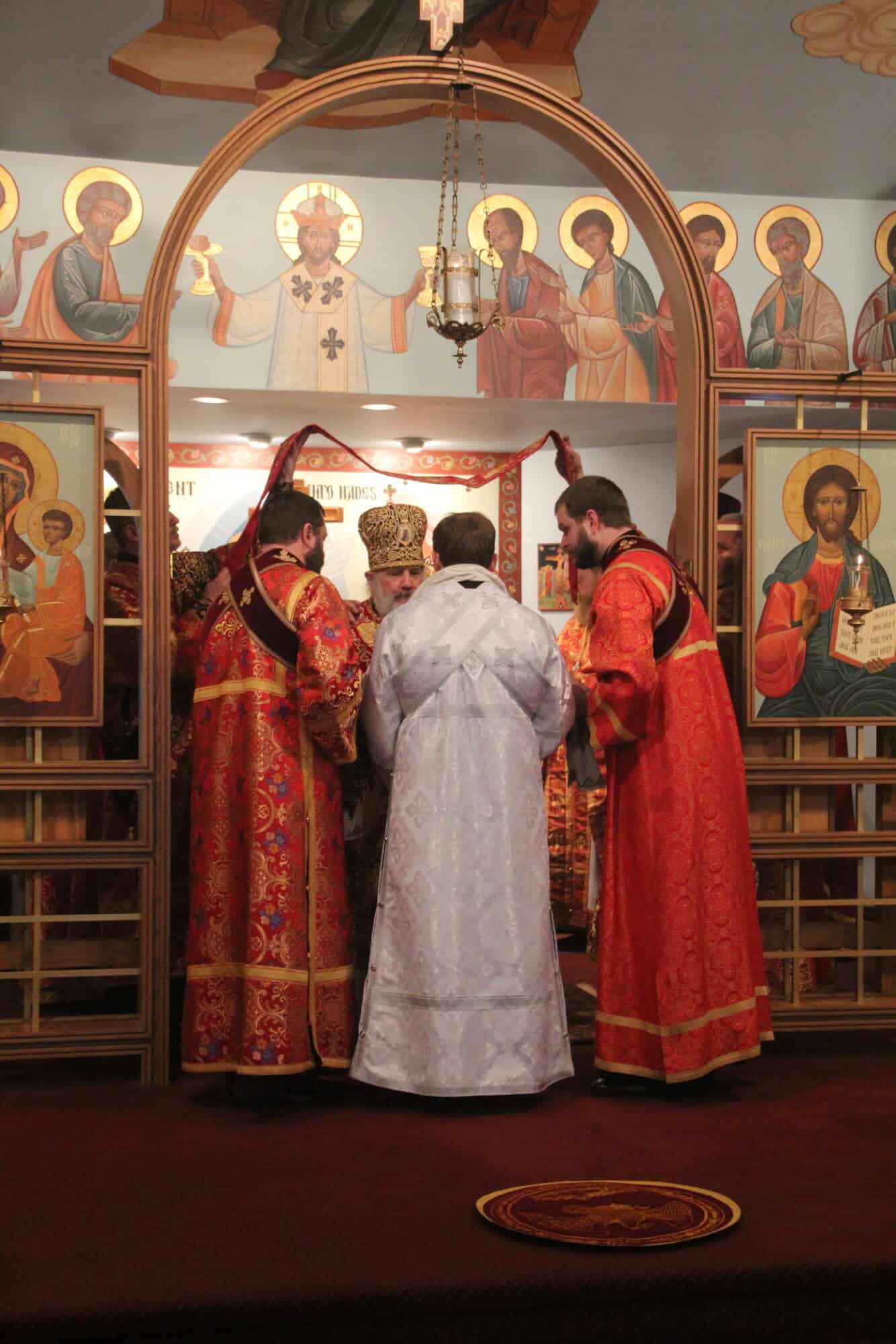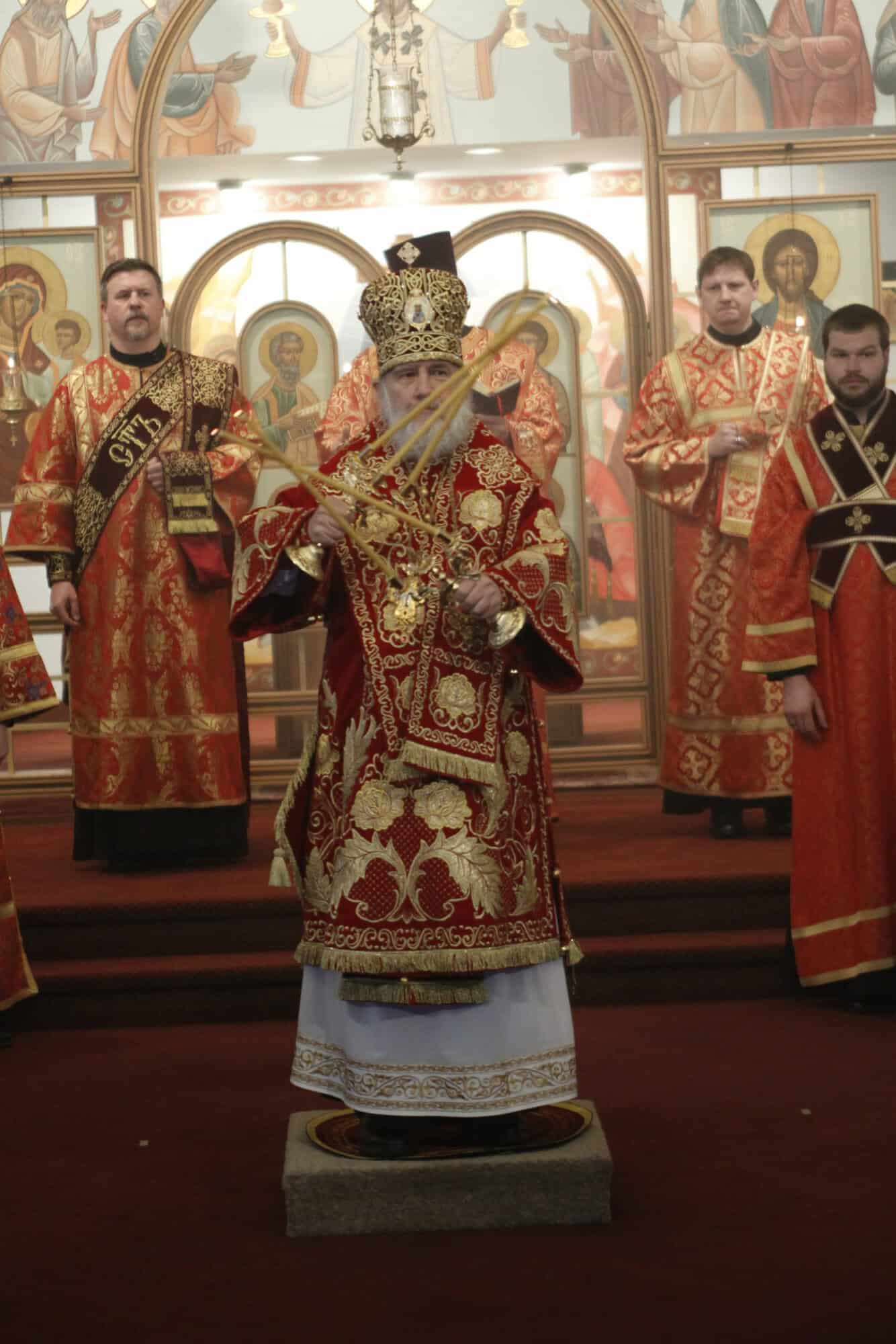 The following day, His Eminence celebrated the Divine Liturgy and was accompanied by Archpriest Herman Kincaid, Priest Mark Therrien, Archpriest Andrew Clements, Archpriest Ilia Marzev, Priest Paisios Hamann, Protodeacon Samuel Slimak, Deacon Matthew Kaminsky, and Deacon Noah.