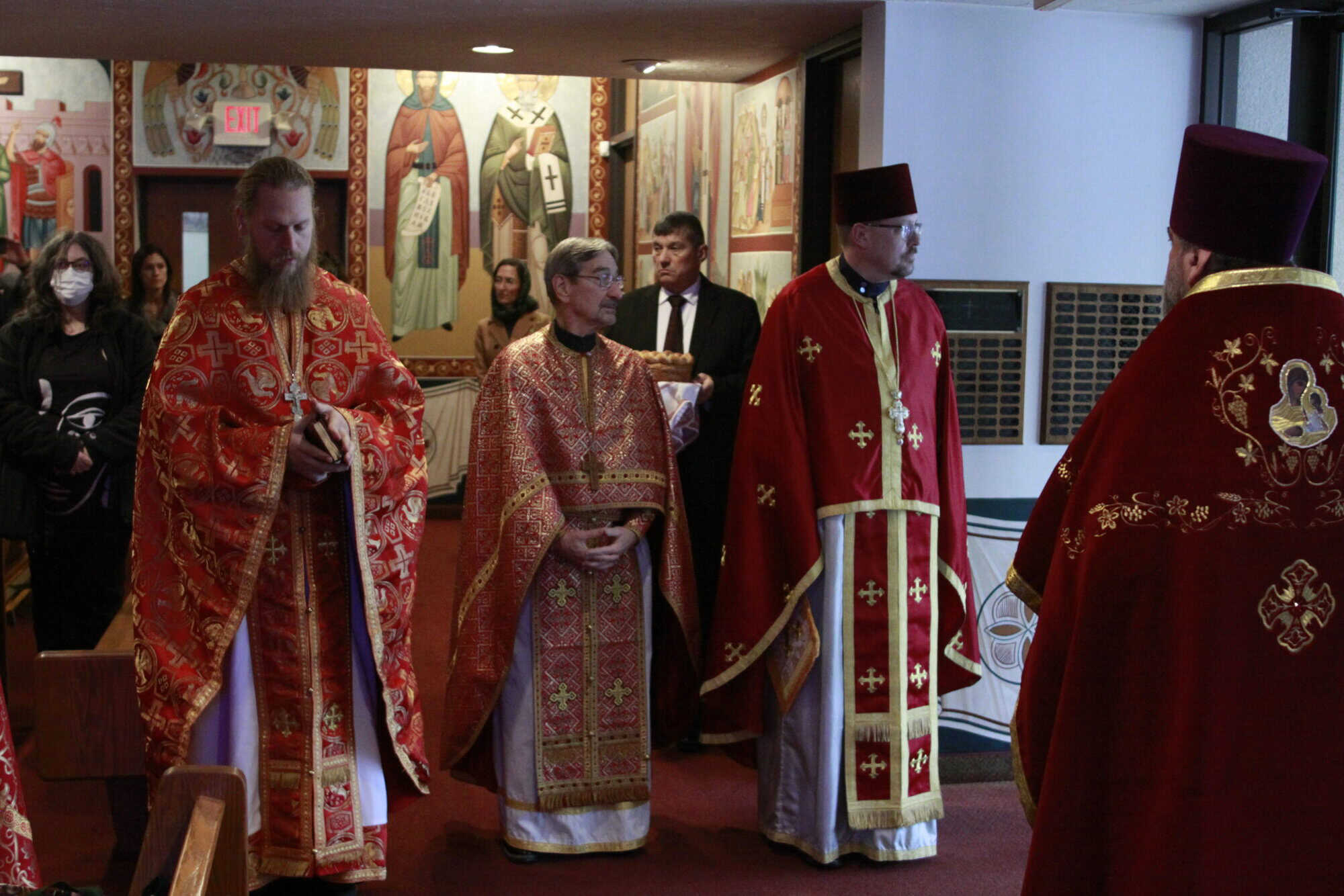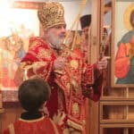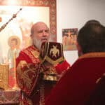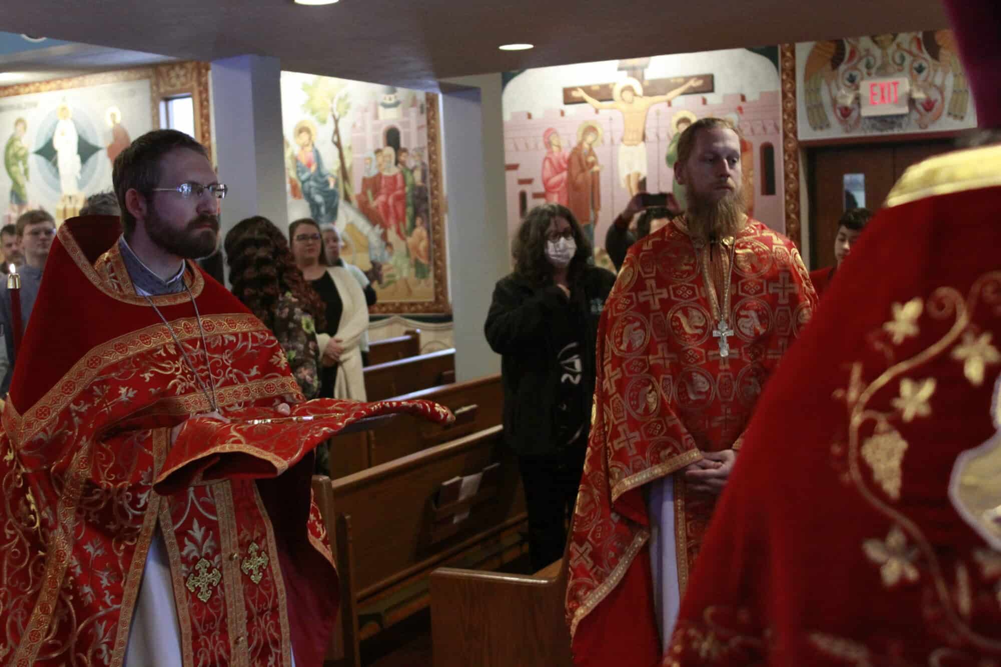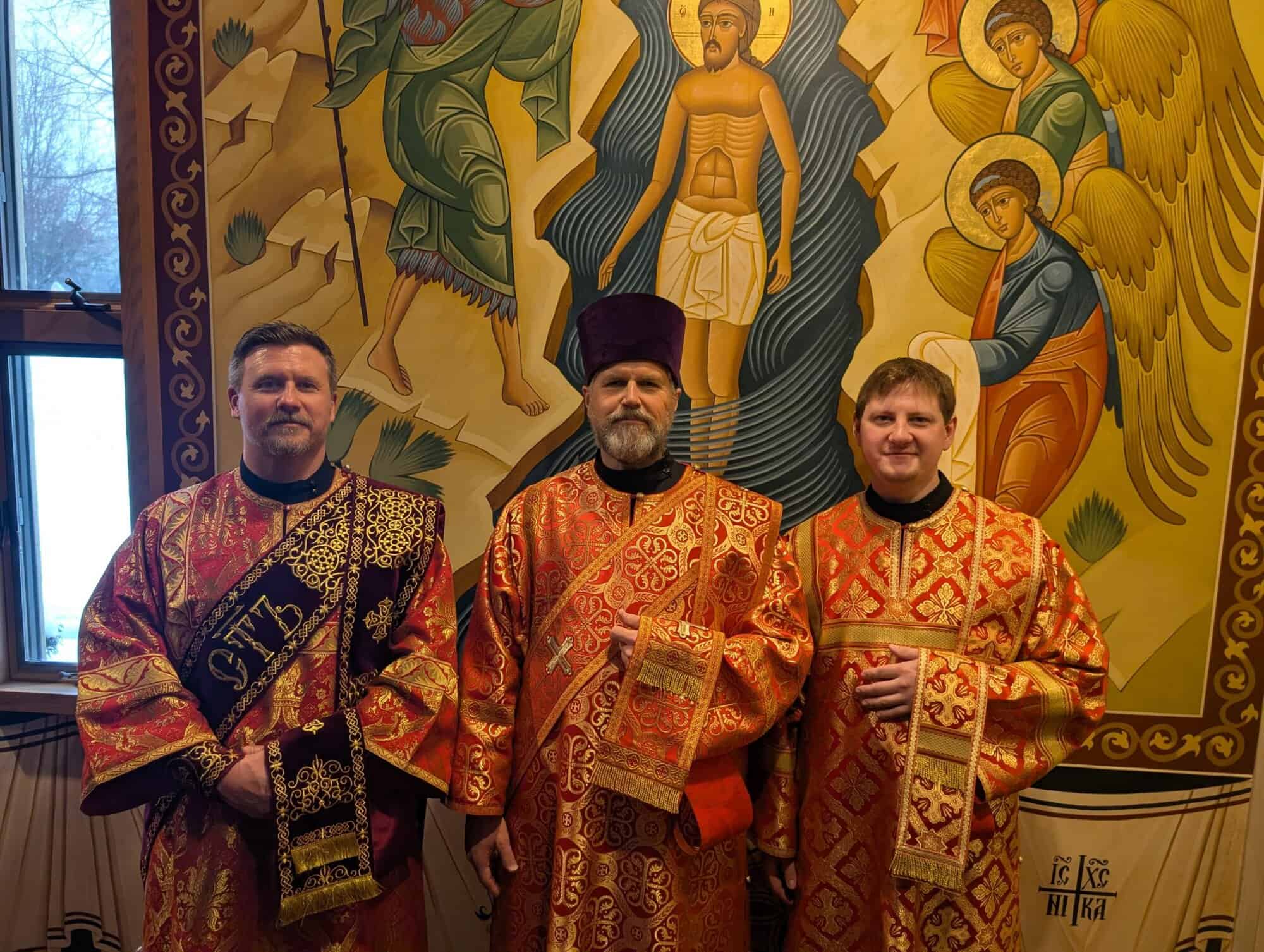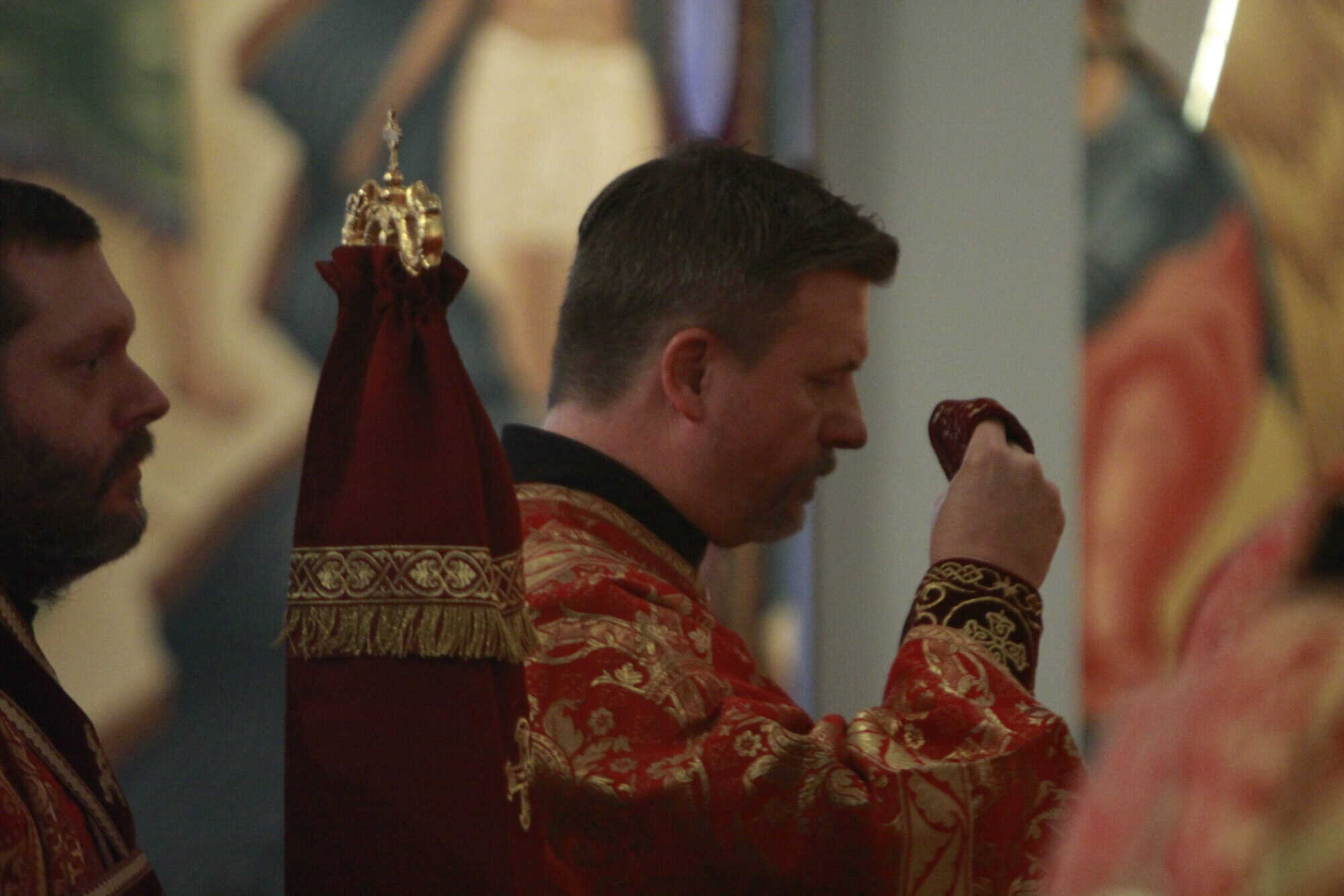 The following day, His Eminence celebrated the Divine Liturgy and was accompanied by Archpriest Herman Kincaid, Priest Mark Therrien, Archpriest Andrew Clements, Archpriest Ilia Marzev, Priest Paisios Hamann, Protodeacon Samuel Slimak, Deacon Matthew Kaminsky, and Deacon Noah.