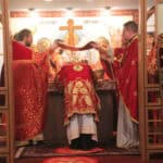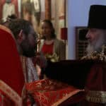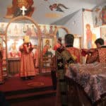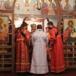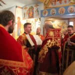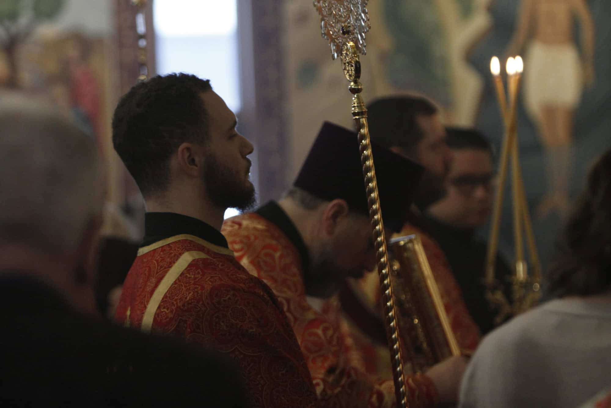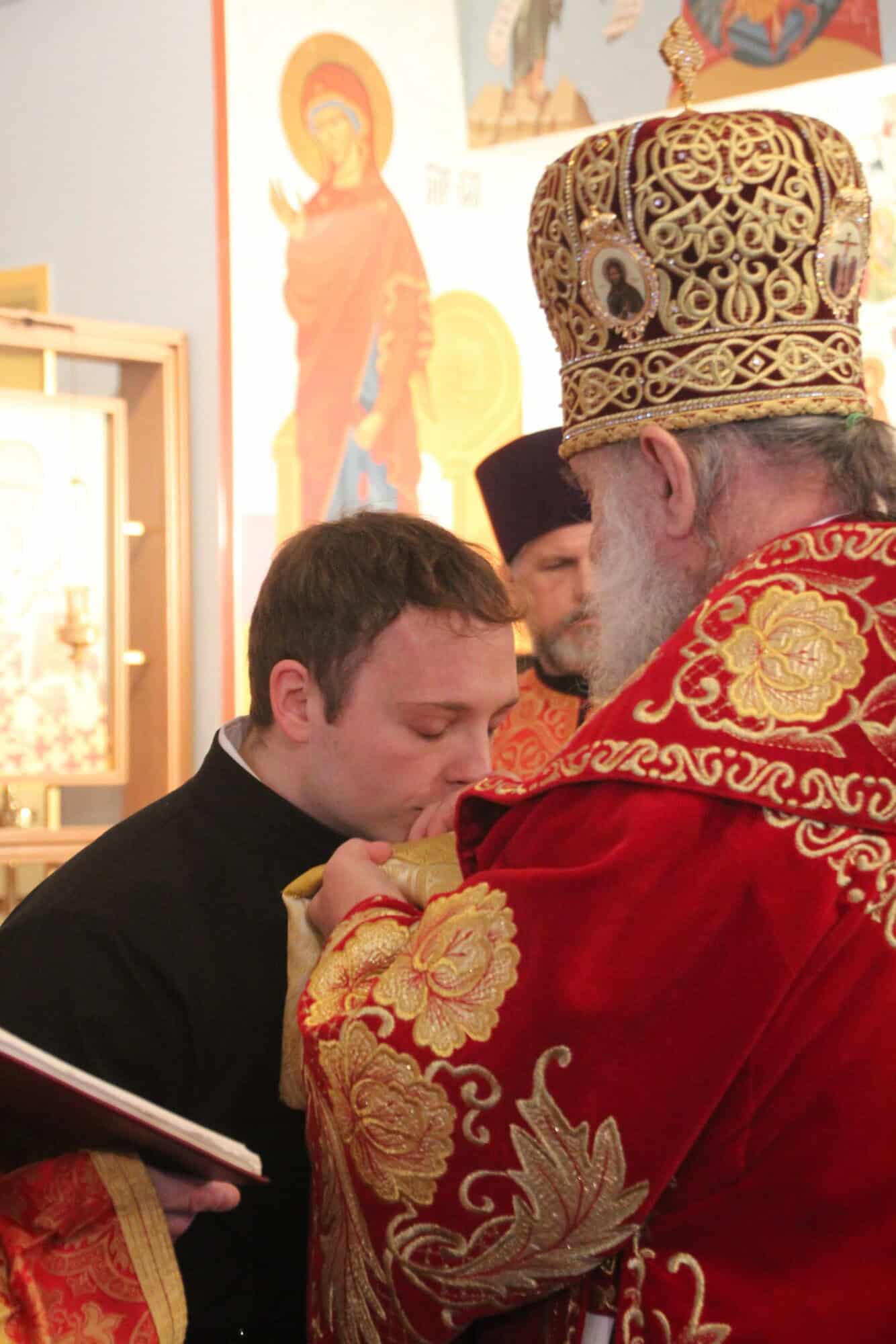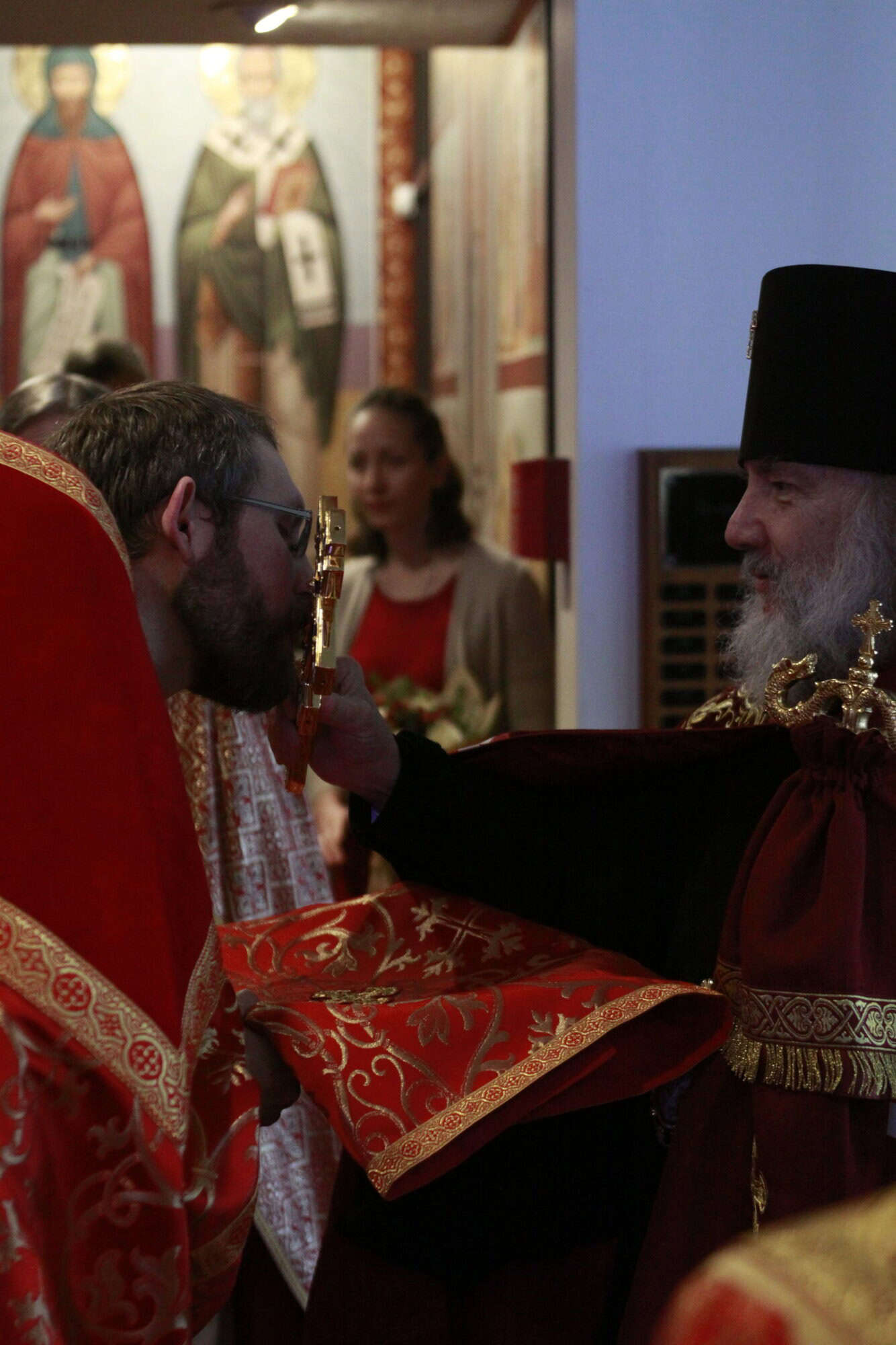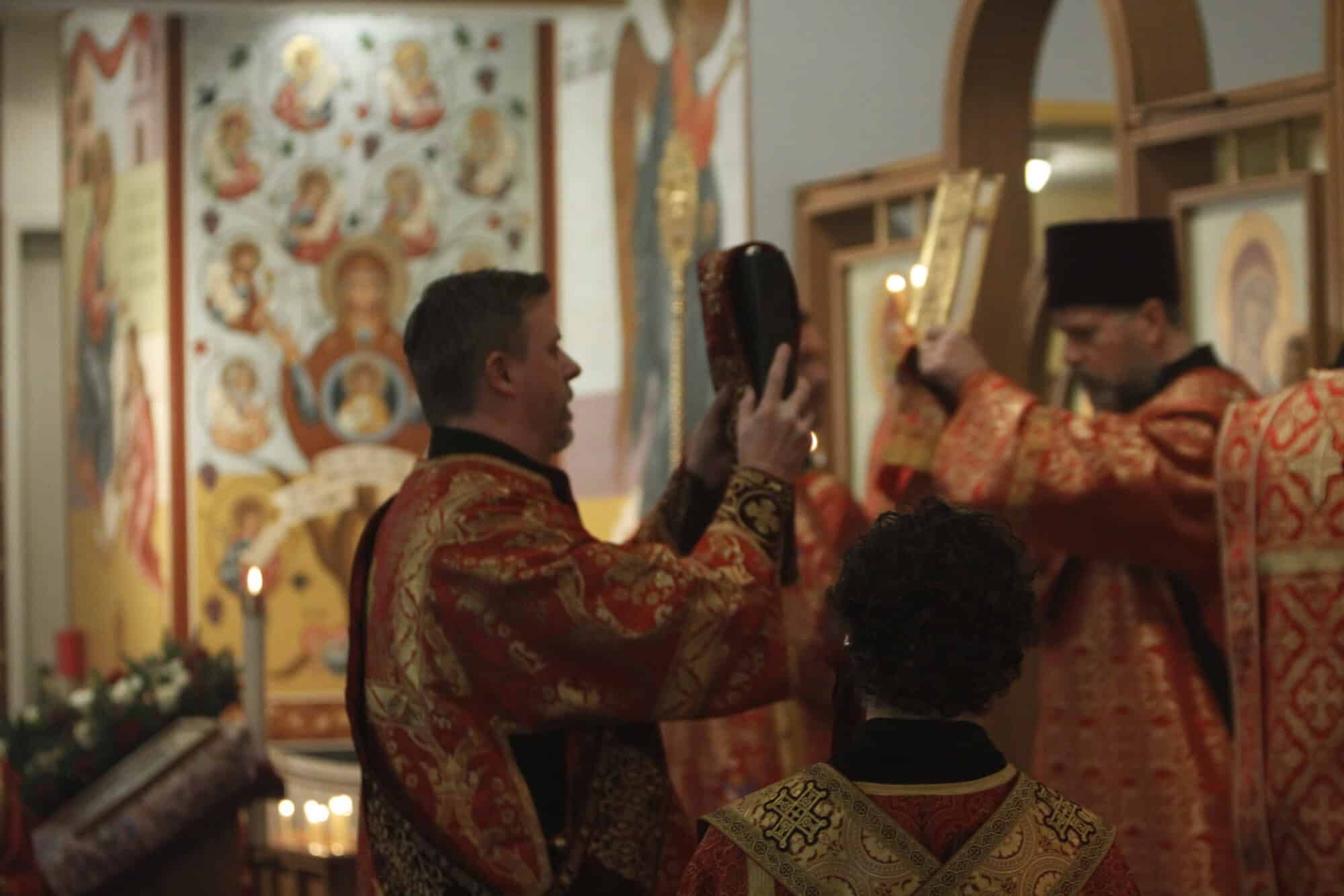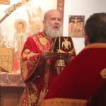The following day, His Eminence celebrated the Divine Liturgy and was accompanied by Archpriest Herman Kincaid, Priest Mark Therrien, Archpriest Andrew Clements, Archpriest Ilia Marzev, Priest Paisios Hamann, Protodeacon Samuel Slimak, Deacon Matthew Kaminsky, and Deacon Noah.
