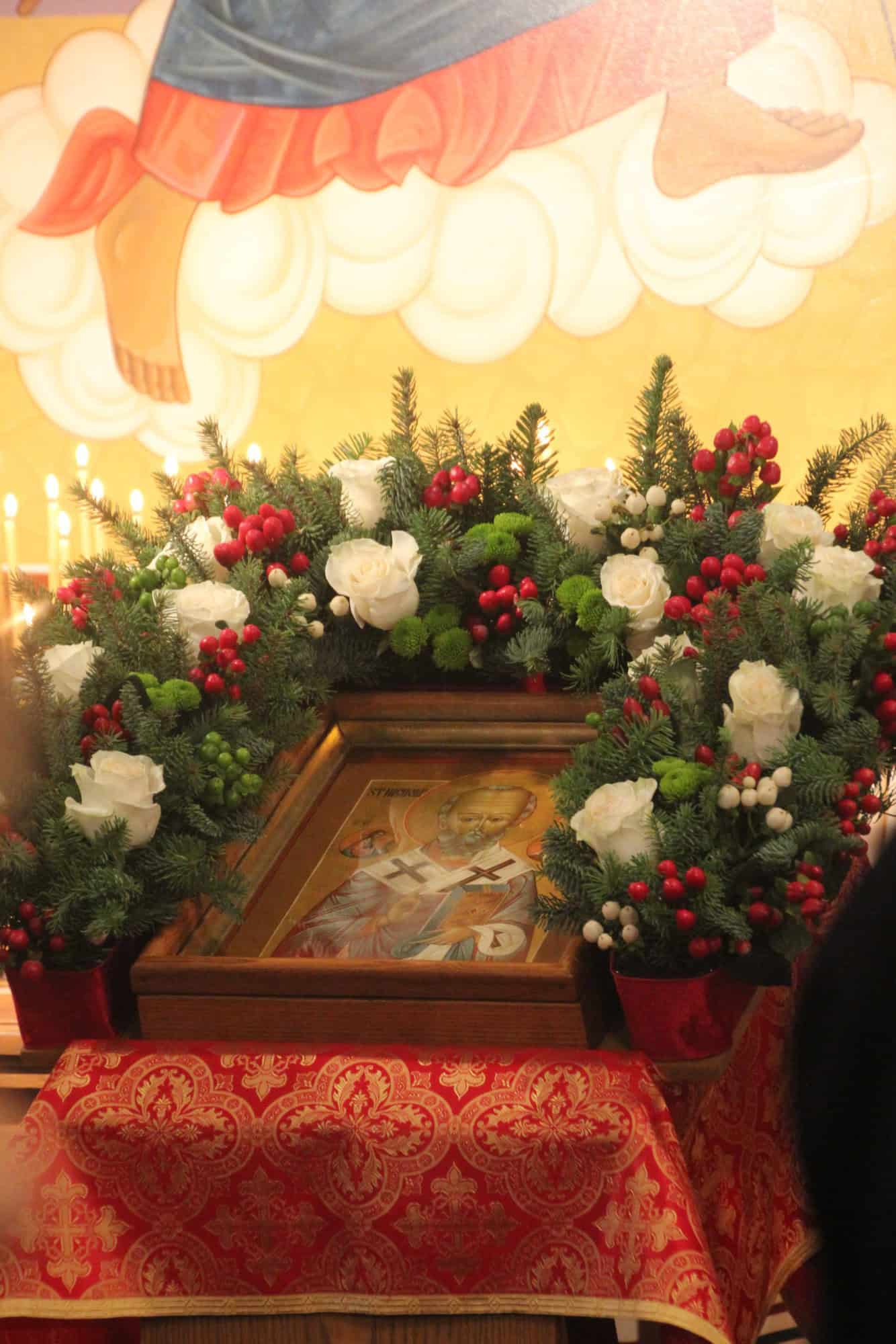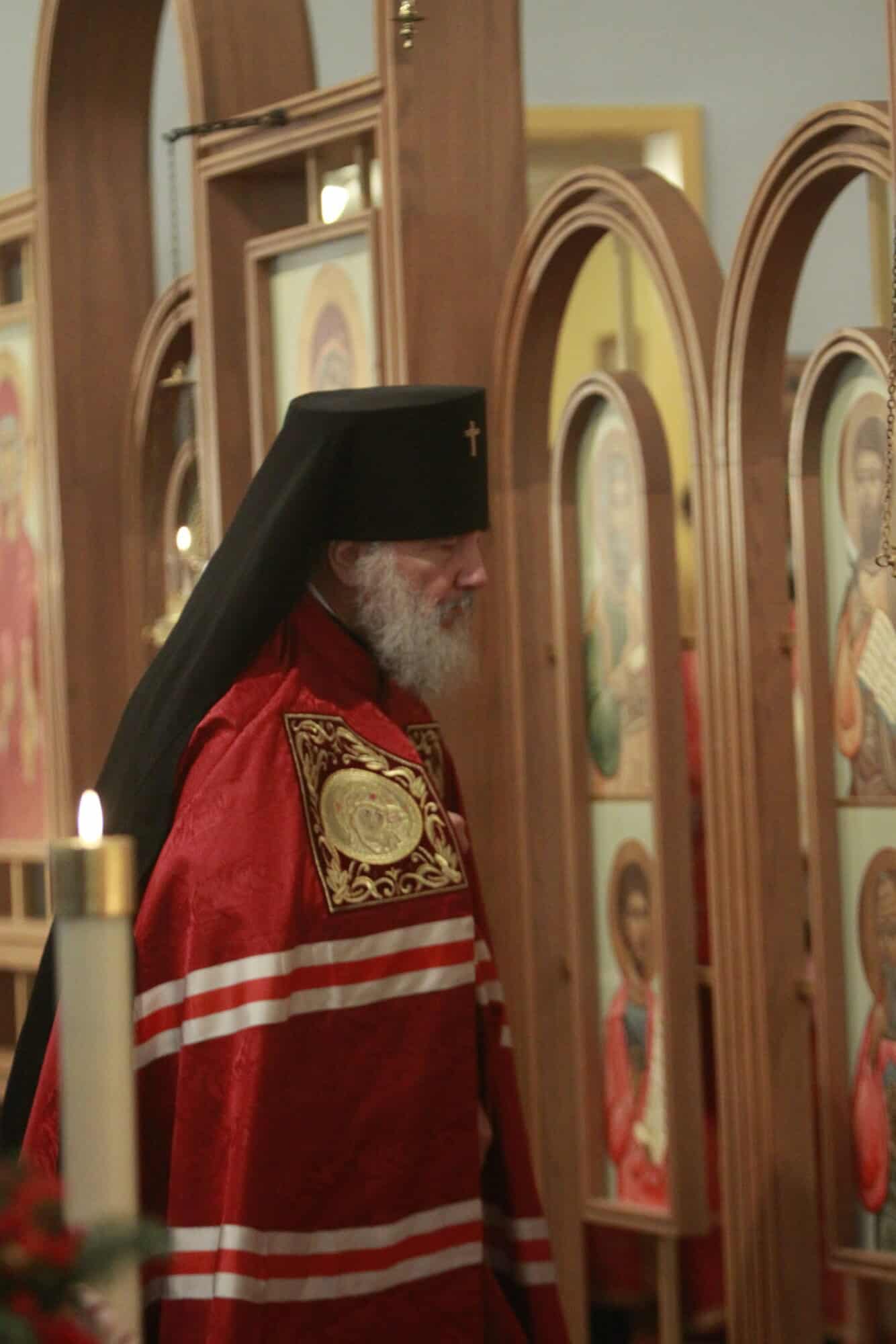 The festal celebrations began with Great Vespers on the evening of Thursday, December 5 by Priest Mark Therrien, Rector, and Deacon Matthew. His Eminence was in attendance and accompanied by the Diocesan Chancellor, Archpriest Herman Kincaid. The Archbishop offered a word to the community as it began its altar feast.