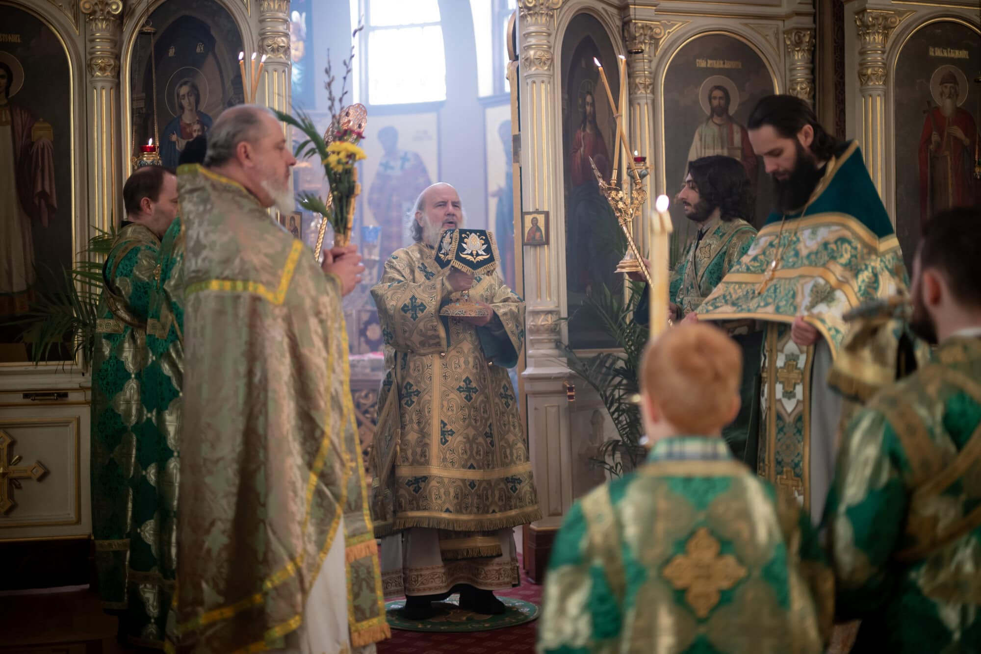 CHICAGO, IL [DOM] – The Feast of our Lord’s Entry into Jerusalem was celebrated by His Eminence Archbishop Daniel of Chicago and the Midwest this past Sunday, April 13 at the Diocesan Cathedral, Holy Trinity Cathedral, Chicago, IL. His Eminence was joined by cathedral clergy, Priest Alexander Koranda, Cathedral Dean, Archpriest Tasrasiy Maxim, Deacon Paul Garklavs. The Cathedral Choir was directed by Ms. Olga Garklavs.
