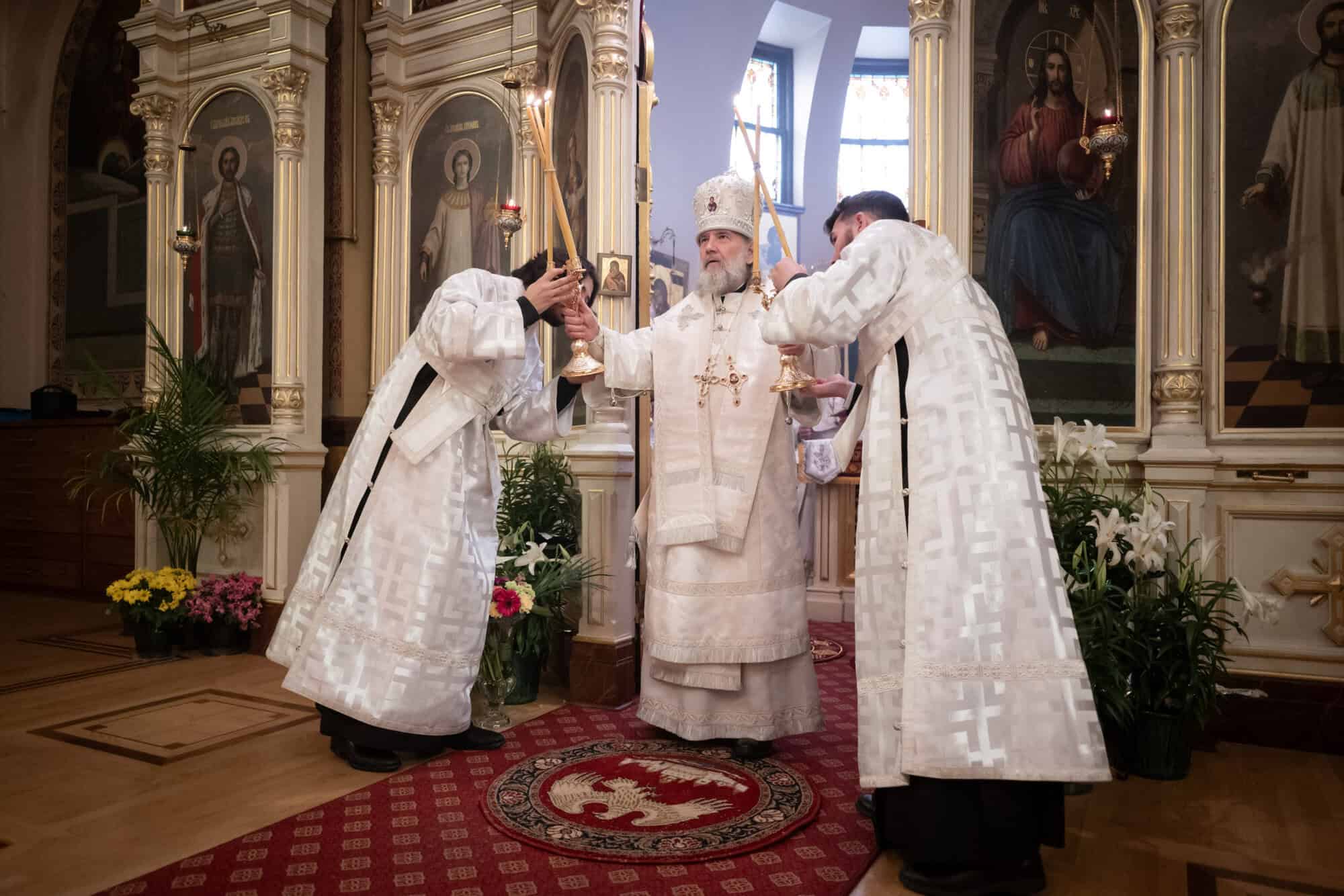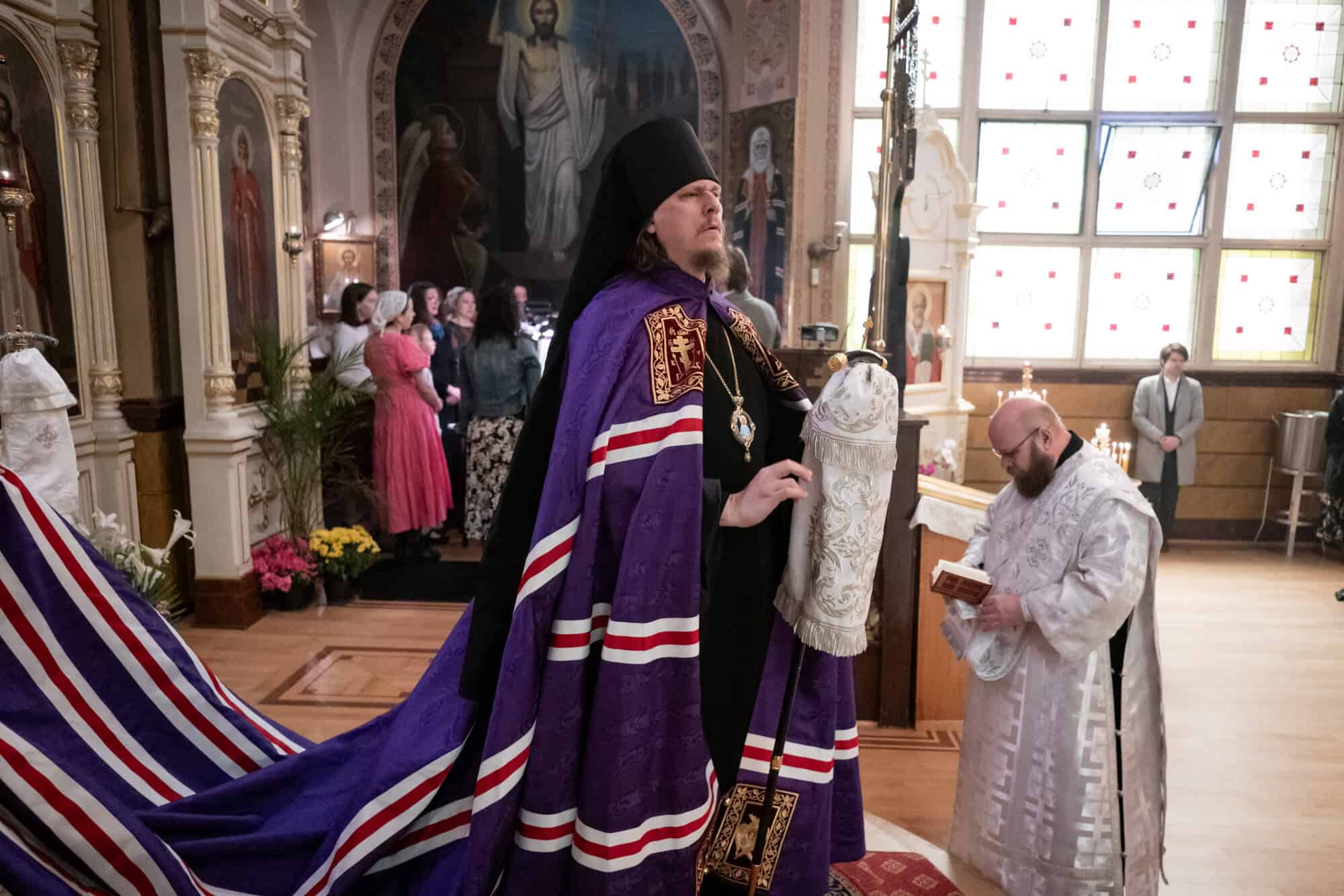 Sunday morning, the commemoration of the Myrrhbearing Women, Archbishop Daniel and Bishop Vasily concelebrated the Divine Liturgy and serving with the bishops were Priest Alexander Koranda, Cathedral Dean, Archpriest Tasrasiy Maxim, Deacon Paul Garklavs and Deacon Timothy Heinbokel. The Cathedral Choir was directed by Reader Vladimir Lymar.