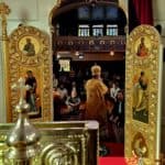 At the end of the Divine Liturgy the hierarchs greeted one another expressing their gratitude to God for the opportunity to be able to serve together. His Grace noted the the Diocese of the West and the Diocese of the Midwest have enjoyed good relations with one another which has been strengthened by Archbishop Daniel’s presence in the diocese for important occasions. Upon thanking His Grace, Archbishop Daniel reflected on the important and historical aspect of Diocesan Hierarchs serving with one another as a sign of unity in the Lord.