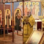 On Sunday morning, following Matins, His Eminence presided at the Divine Liturgy. Serving with the Archbishop were Fr. John, Deacon Spyridon, and Deacon Timothy Heinbokel from Holy Trinity Cathedral, Chicago, IL, who accompanied His Eminence. The Archbishop preached on the Parable of the Sower, reminding us to turn to the tools of the church to cultivate ourselves as good soil so that we might receive the Word. Following the Divine Liturgy, a potluck fellowship was held, during which His Eminence was able to speak with many of the faithful, both longtime members as well as newer ones, and even some inquirers.