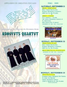 CHICAGO, IL [MW Diocese Communications] — The internationally acclaimed Konevets Quartet, from St. Petersburg, Russia, will perform at different venues this fall in the Greater Chicago, ...