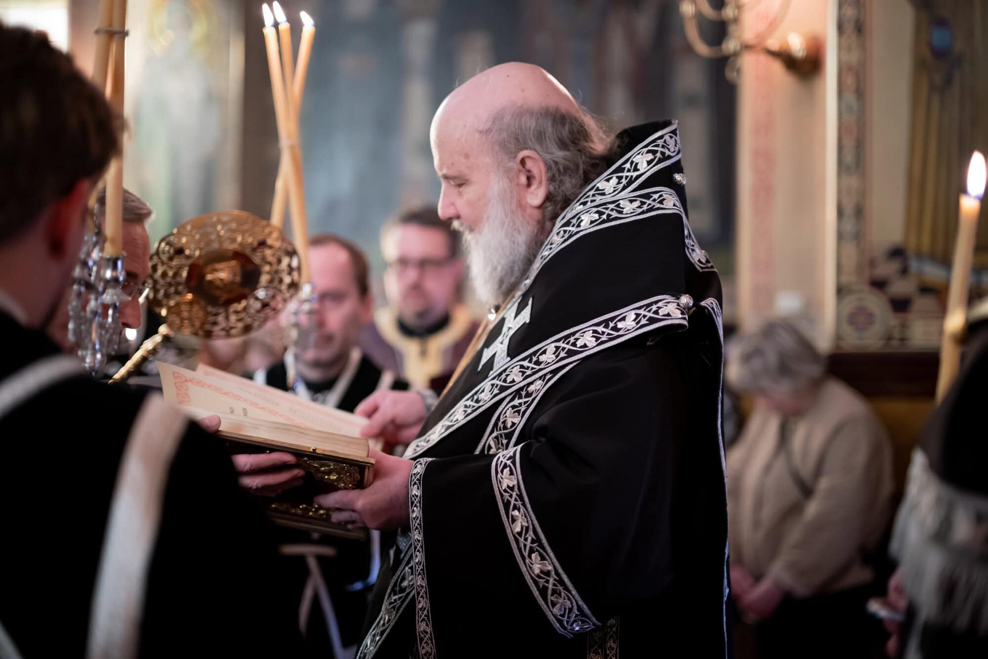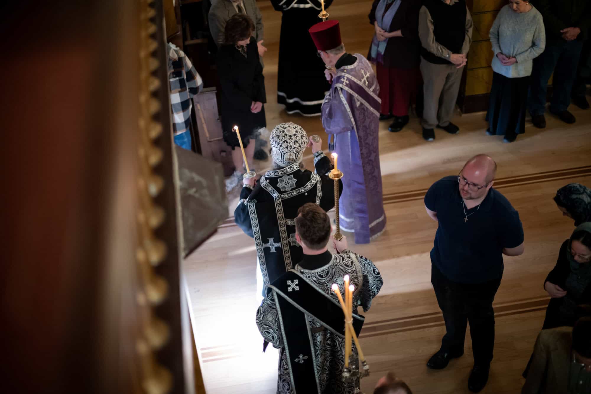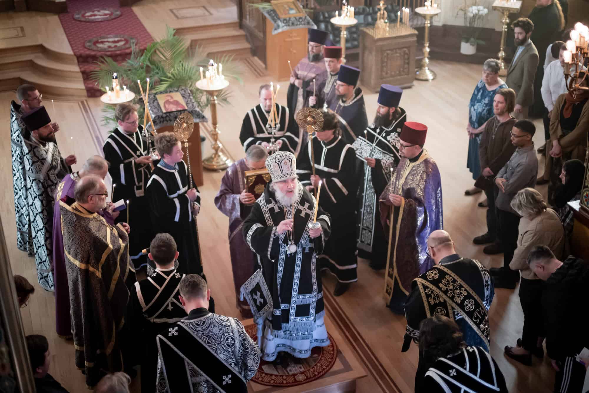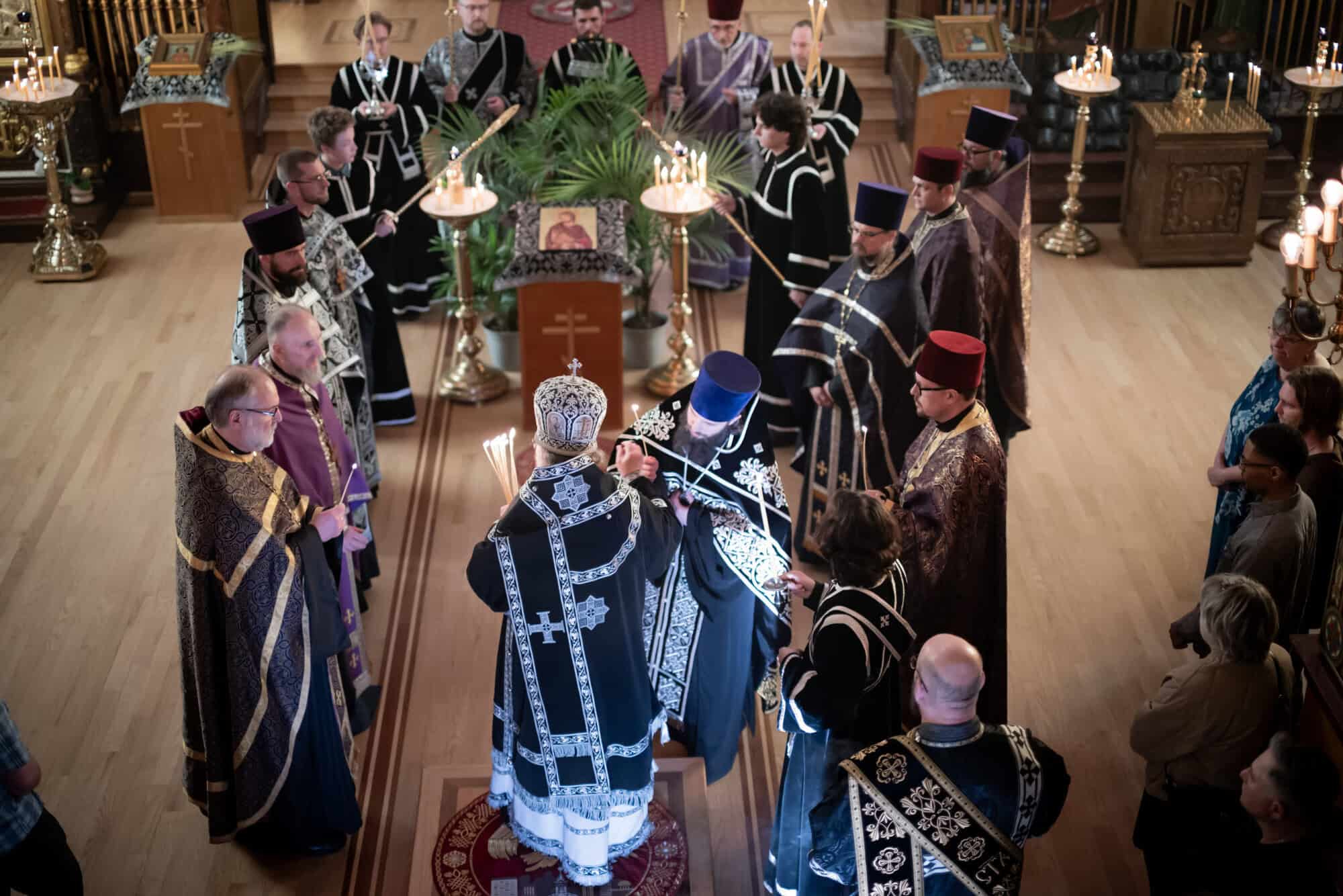 CHICAGO, IL [DOM] – The Chicago Deanery gathered on Sunday evening, April 13, to begin Great and Holy Week serving Bridegroom Matins. The service was lead by His Eminence Archbishop Daniel of Chicago and the Midwest who was joined by local clergy.