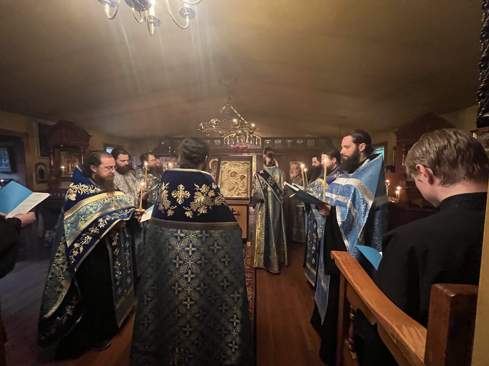 The Holy Icon arrived at the monastery on Tuesday evening, July 8, and was greeted by the Igumen Gabriel and the brotherhood of the monastery. Priest Alexander Koranda, Cathedral Dean and Reader Justinian Tatooles, traveled with the icon and were warmly welcomed by the brotherhood. The All Night Vigil for the feast was served with the singing of the Akathist.