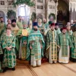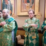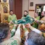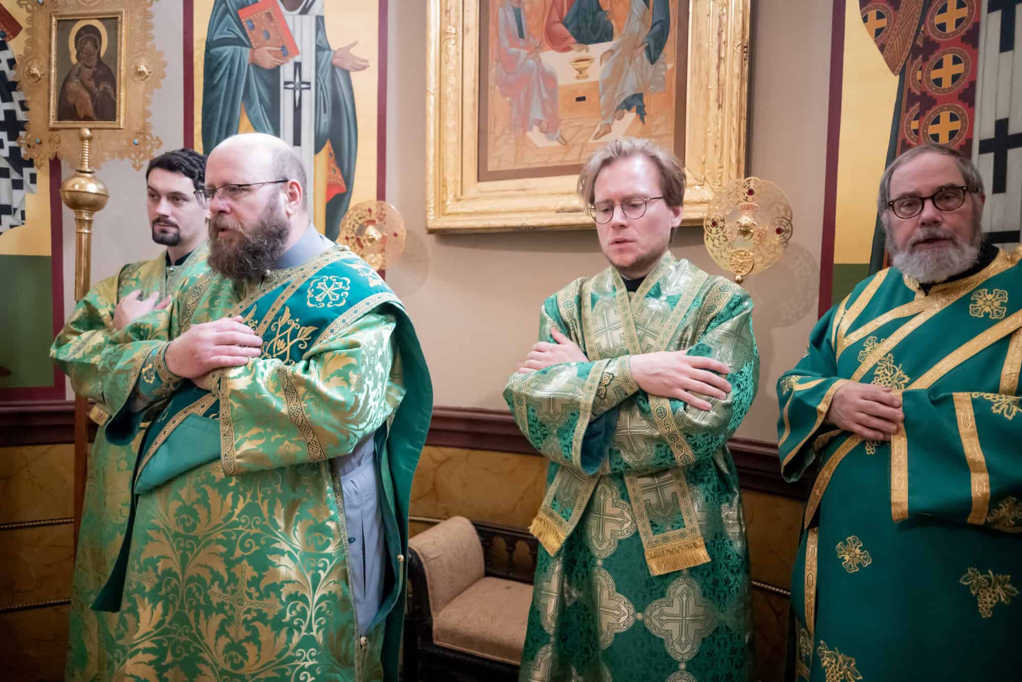 His Eminence was assisted by Archpriest Herman Kincaid, Chancellor, Priest Alexander Koranda, Cathedral Dean, Priest Esteban Vazques, Mitered Archpriest Vladimir Kovalchuk, Priest Nikolai Lochmatow, Priest John Kennerk, Priest Daniel Greeson, Priest Anthony Saunders, Priest Joseph Whittaker, Deacon Paul Garklavs, Deacon Nikola Tambur, and Deacon Timothy Heinbokel.
