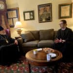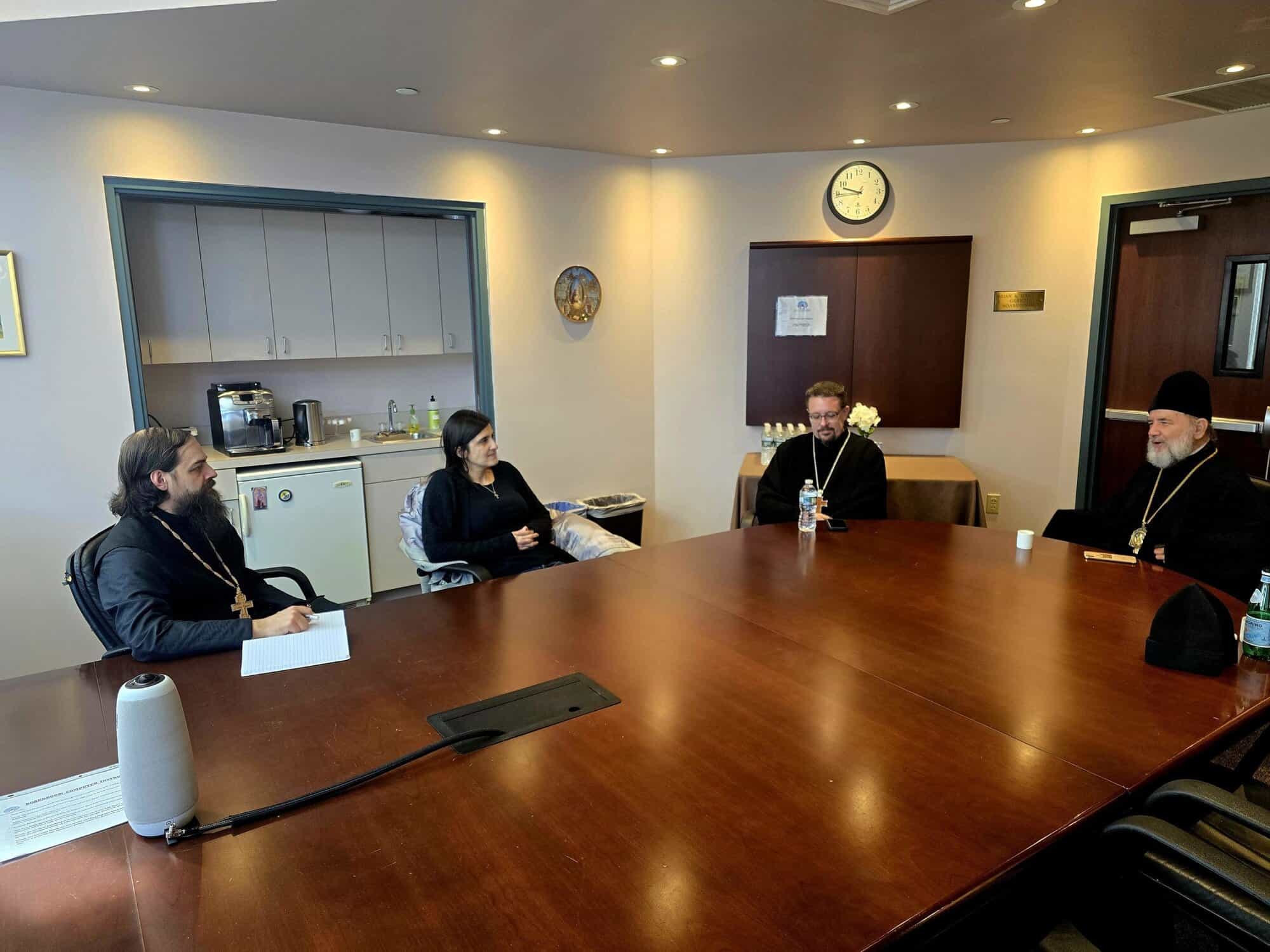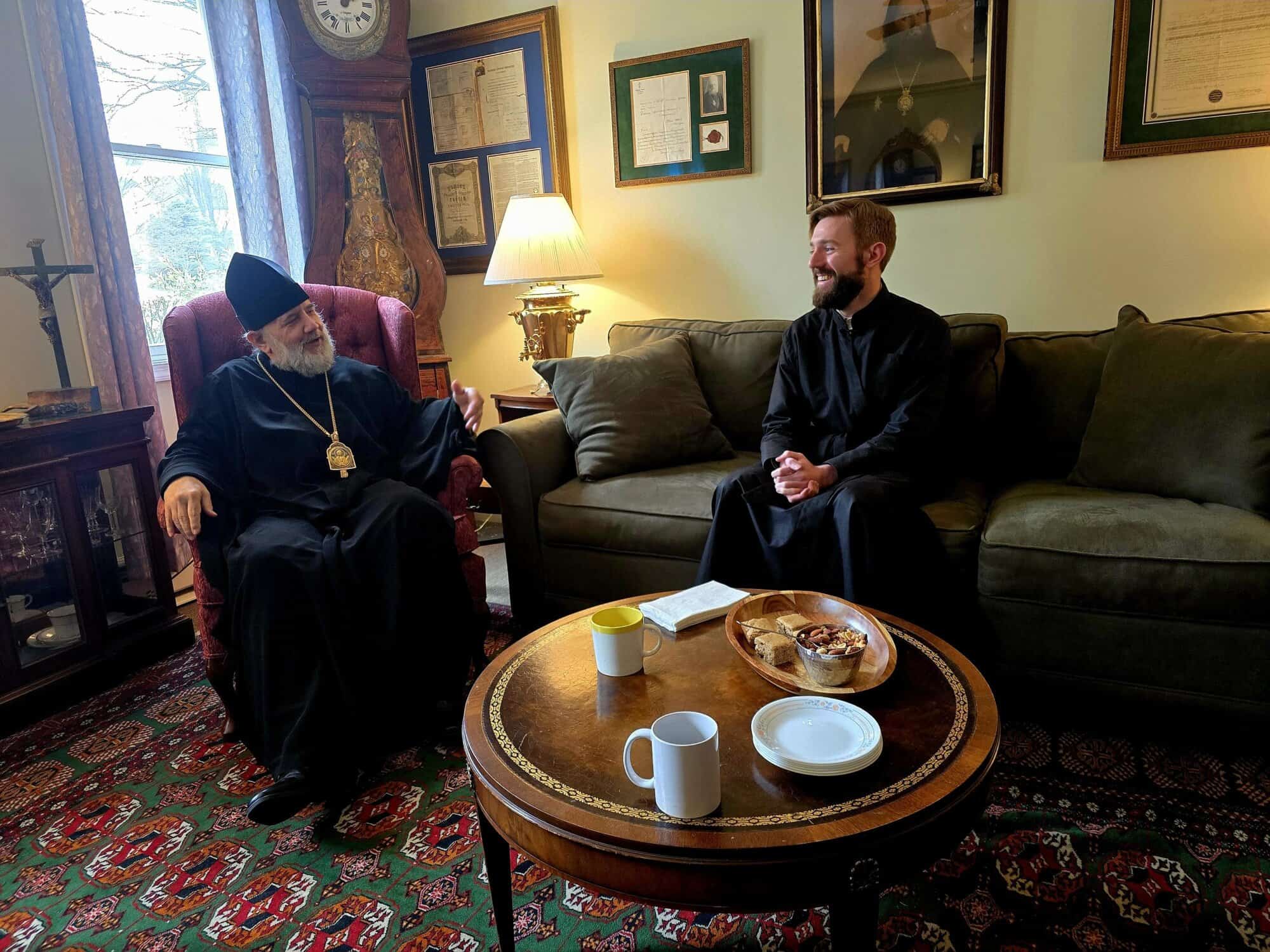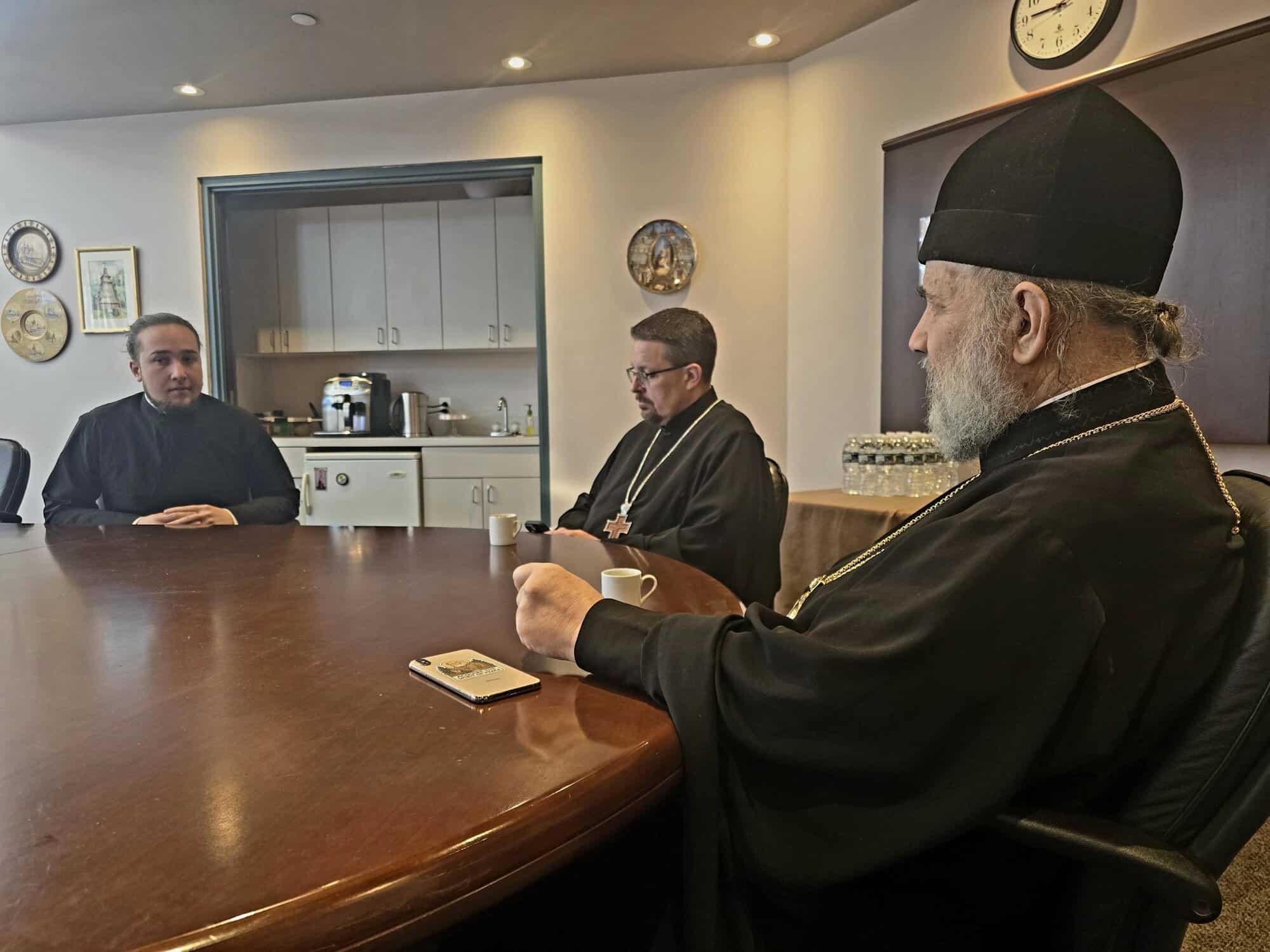 That evening, the Archbishop traveled to St. Tikhon’s Seminary and had dinner with the seminarians and their families. On Thursday, March 5, the Archbishop met with Archpriest John Parker, Dean of the Seminary and Priest Paul Witek, Dean of Academic Affairs, as well as the Midwest students throughout the morning.