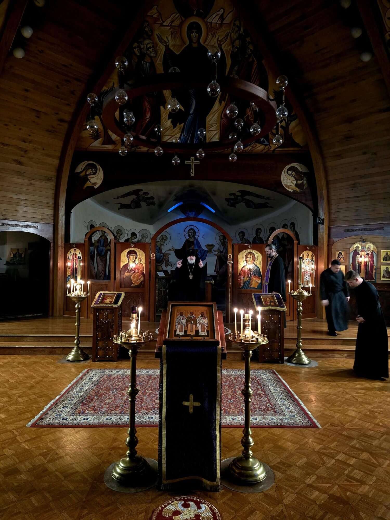 On Tuesday evening, the Archbishop arrived at St. Vladimir’s Seminary with Archpriest Herman Kincaid, Chancellor, and Priest Alexander Koranda, Cathedral Dean, and Deacon Timothy Heinbokel. The delegation attended Great Compline and then gathered the seminarians and their family’s for dinner.