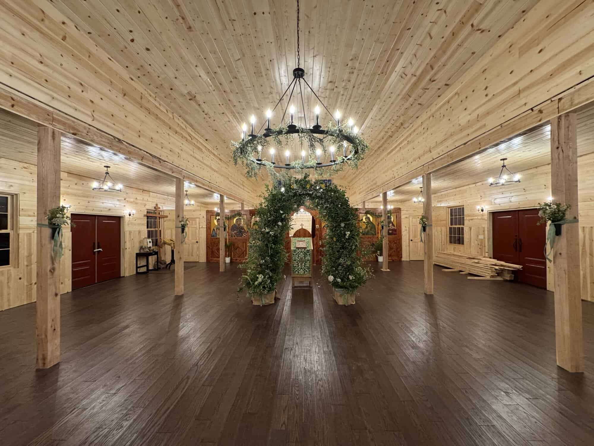 Plans for a permanent temple were initially drawn up in 2021. However, by early 2023, the parish had already outgrown these plans. In July of 2024, Annunciation purchased an adjacent plot of 15 acres of land and immediately began work on a multipurpose building which would serve as a transitional space for the growing community. Future plans are to have this multipurpose building serve as the fellowship hall upon completion of the permanent limestone temple, but as of June 7, it now serves as the church itself.