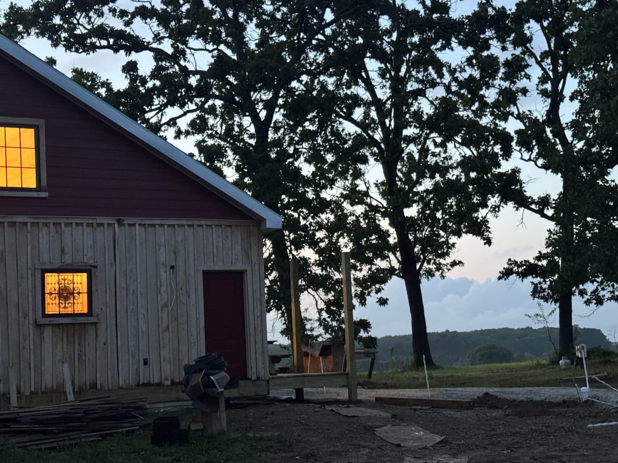 In these early days, the small but growing Annunciation community gathered in a Knights of Columbus hall and then, after the generous offering of the space by one of the church’s families, in part of an office building. In early 2014, after a miraculous series of donations, Fr. Joel and his family purchased property in St. James, MO, which included a house, a separate outbuilding, and five acres of land. By February of 2015, members of Annunciation finished renovating the outbuilding to use as a temporary chapel.
