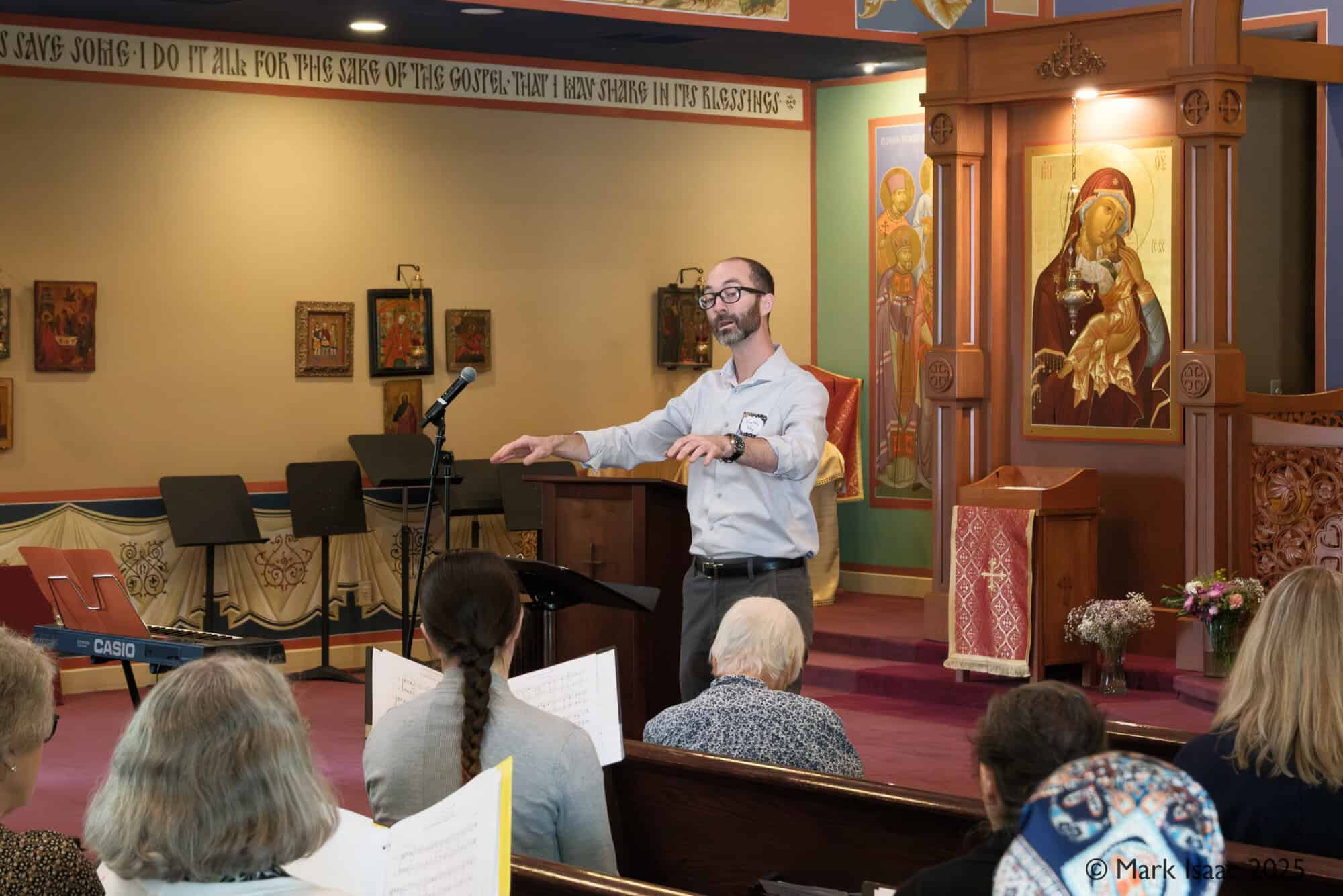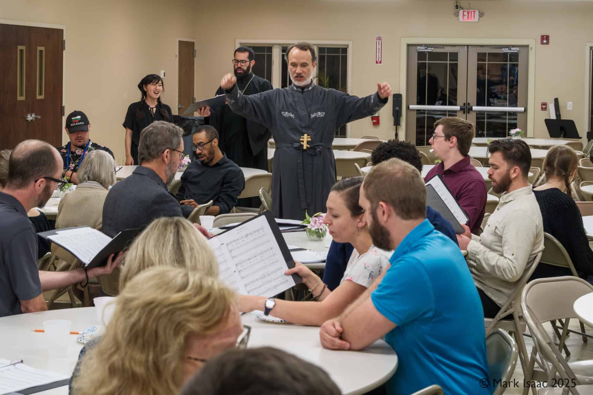 The workshop, organized by the Diocese of the Midwest’s St. Andrew of Crete Music Ministry, commenced on Friday evening with a moleben and a thought-provoking opening talk titled Poetry in Worship: Understanding Liturgical Texts by Fr. Gregory Ealy. One of the highlights of the weekend was the music reading session during Friday’s reception, where participants had the opportunity to sing both classic and contemporary pieces from composers like Dmitry Bortniansky and Nazo Zakkak.