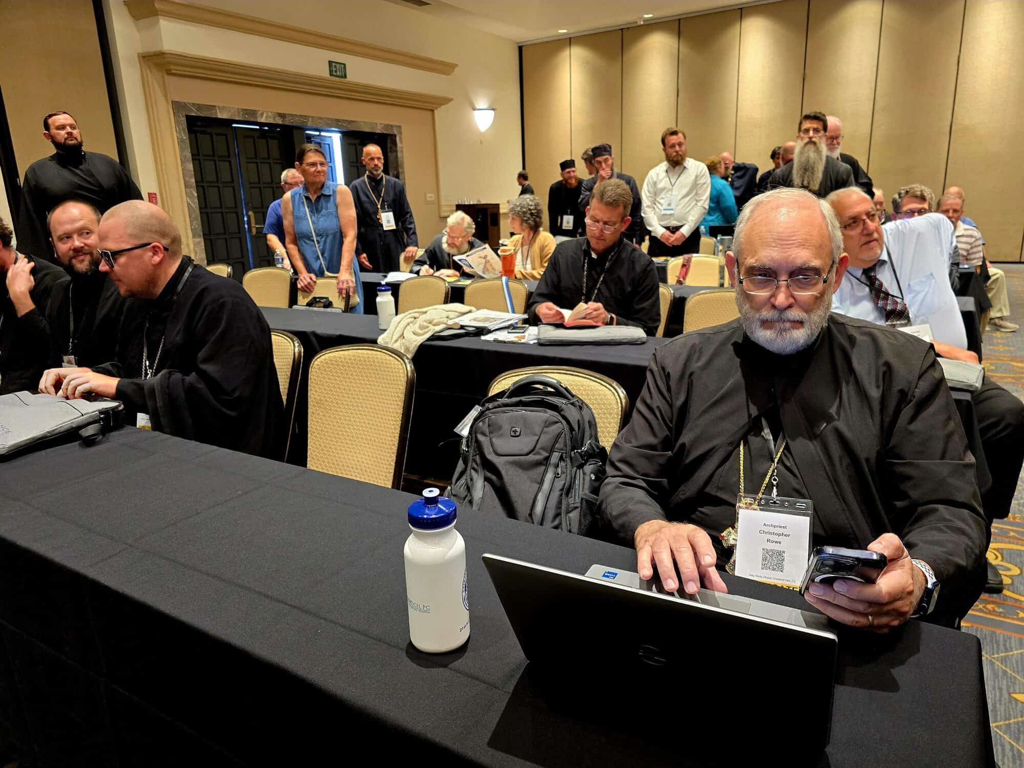 Delegates of the Midwest Diocese filled the meeting room in the Arizona Grand Resort, Phoenix, AZ, the location of the All-American Council, in order to convene this annual gathering. The Archbishop delivered his address to the diocese speaking about the development and growth of the diocese over the past three years. His Eminence especially noted the increase in seminarians within the diocese, as well as the many catechumens throughout the diocese. Archbishop Daniel thanked the diocese and expressed his love and prayers for his flock.