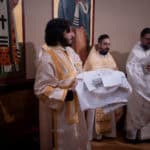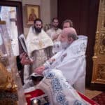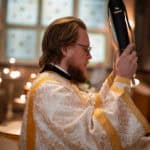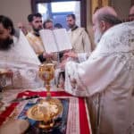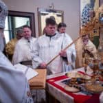 After the Great Entrance, Deacon Jarrod was ordained to the Holy Priesthood and following the consecration of the Holy Gifts, Subdeacon Joshua Hodges was ordained to the diaconate. After the Prayer at the Ambo, the Great Blessing of Water was held and the Archbishop blessed the temple and faithful gathered.