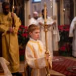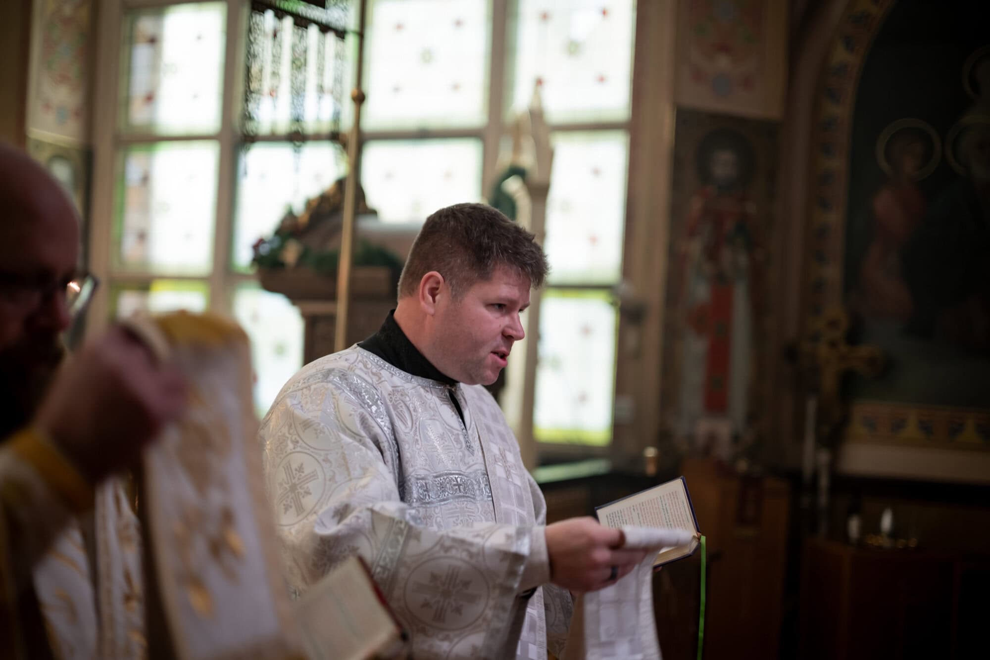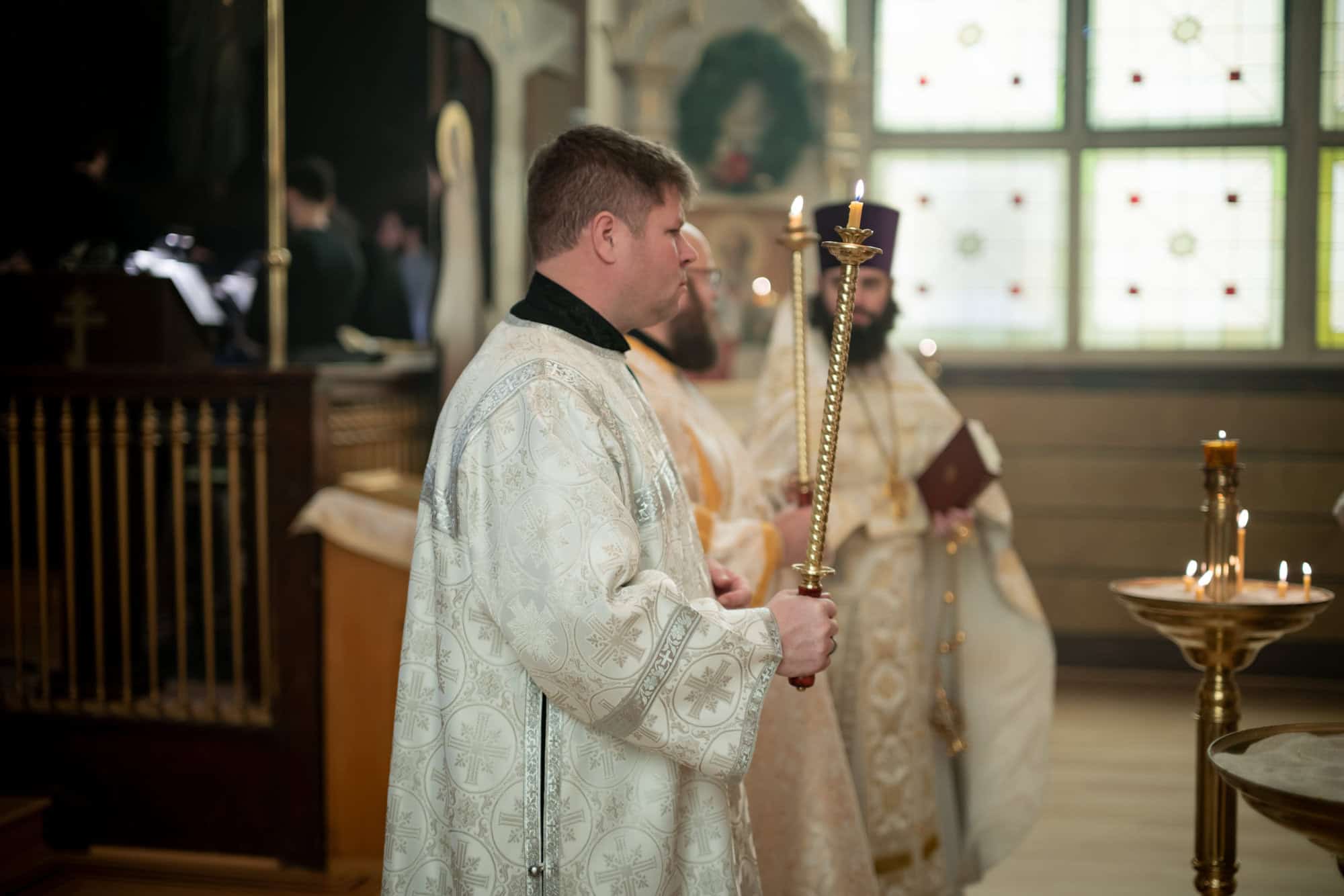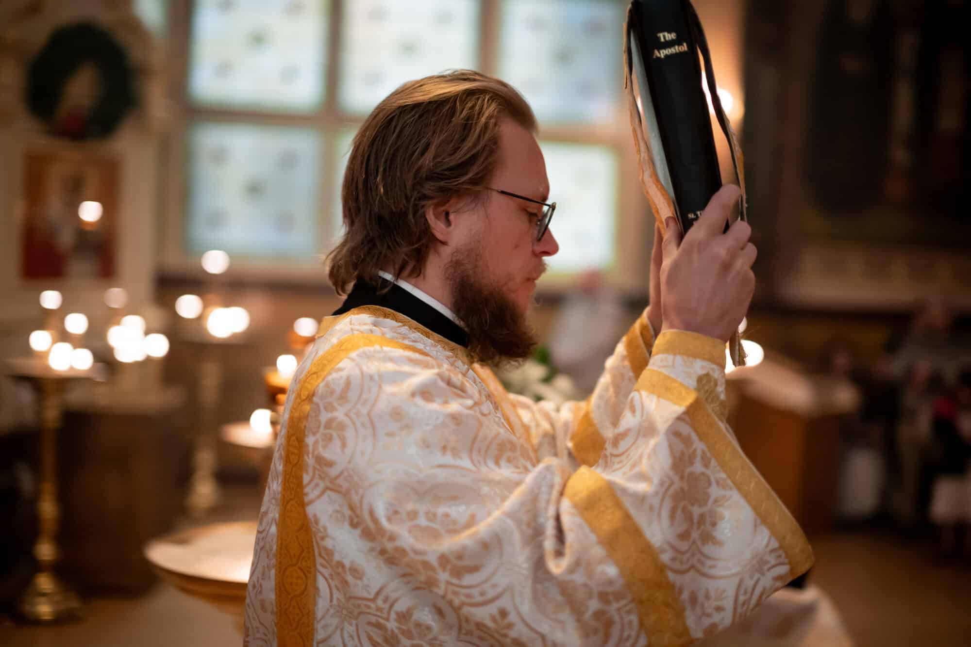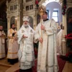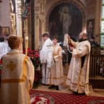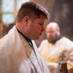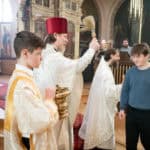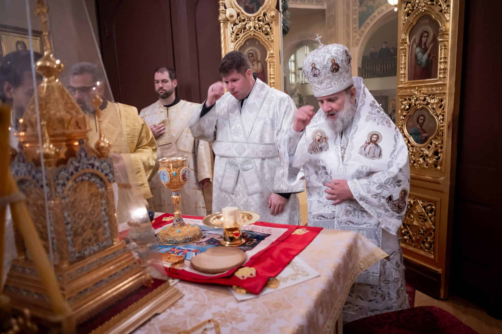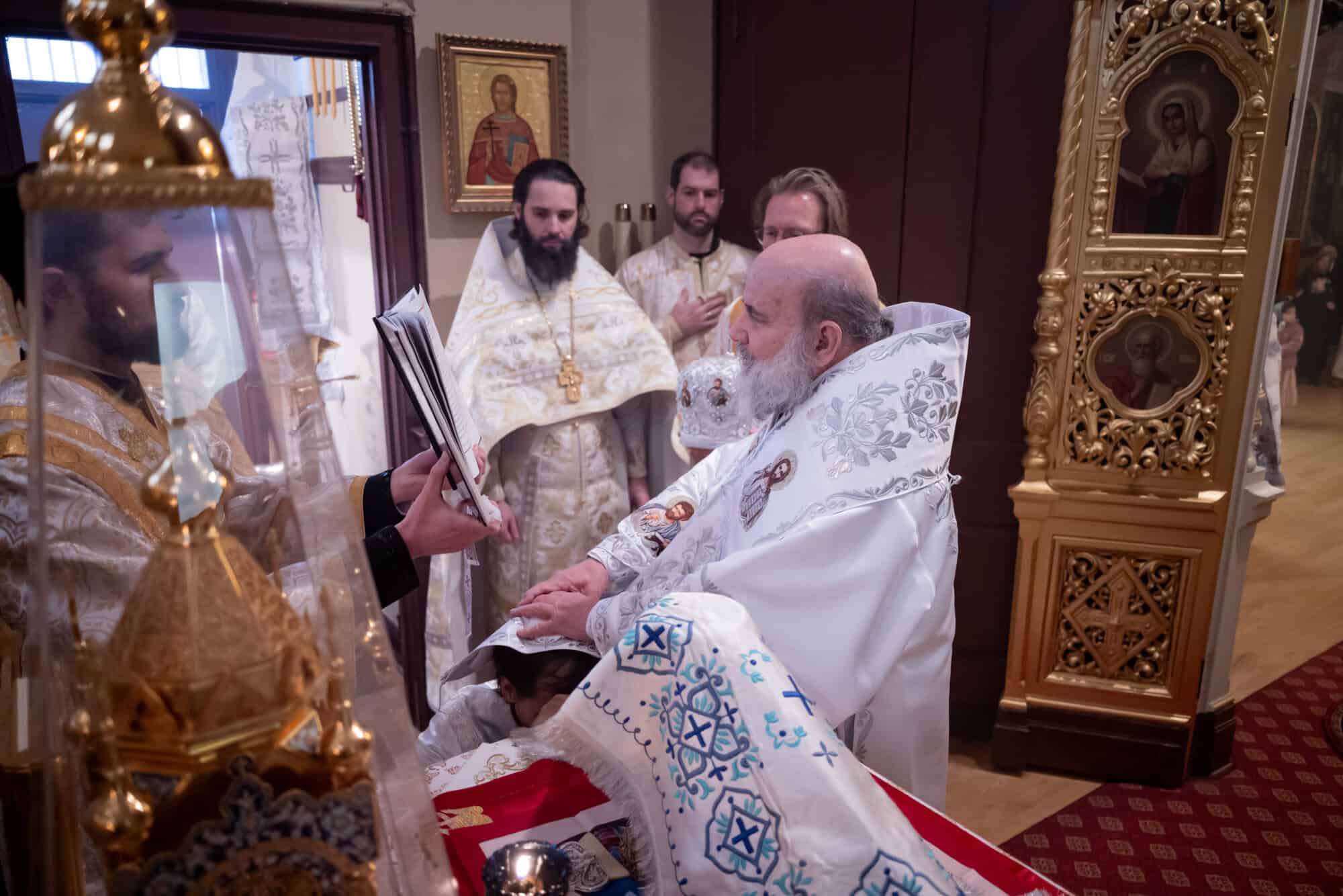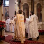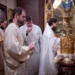 Festal services began on Friday morning with the celebration of the Vesperal Liturgy served by His Eminence Archbishop Daniel of Chicago and the Midwest, and Deacon Timothy Heinbokel. At the conclusion of the Liturgy, the Great Blessing of Water was celebrated, and the festal icon was processed into the center of the Cathedral by Priest Alexander Koranda, Cathedral Dean. Later that evening, the Archbishop celebrated Great Compline and Festal Matins. Serving with His Eminence were Fr. Alexander, Archpriest Justin Matthews, Priest John Reavis, Deacon Paul Garklavs, Deacon Timothy Heinbokel, and Deacon Jarrod Huffman.