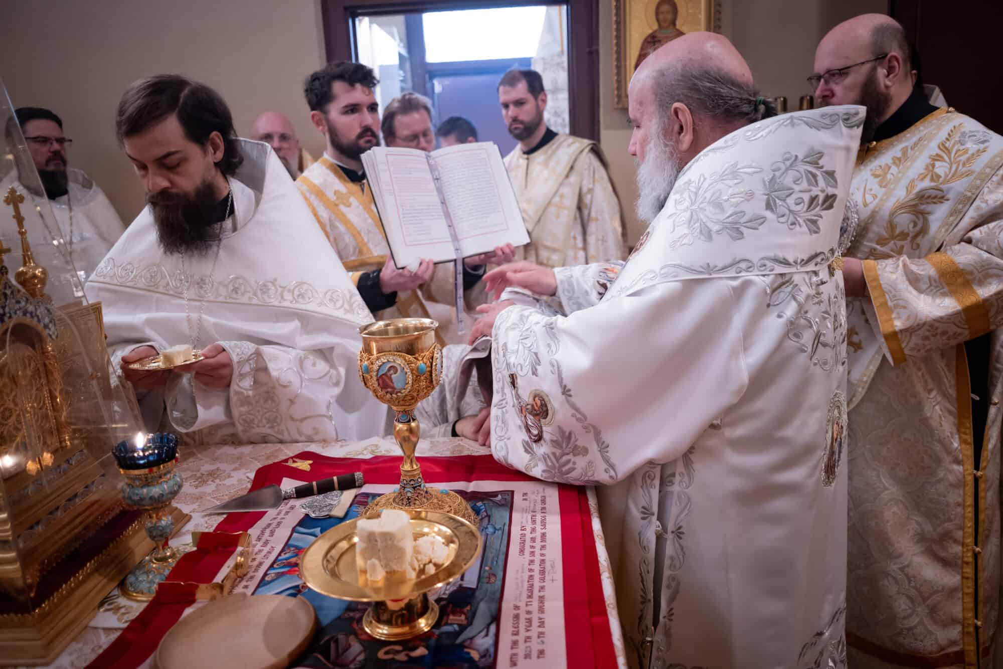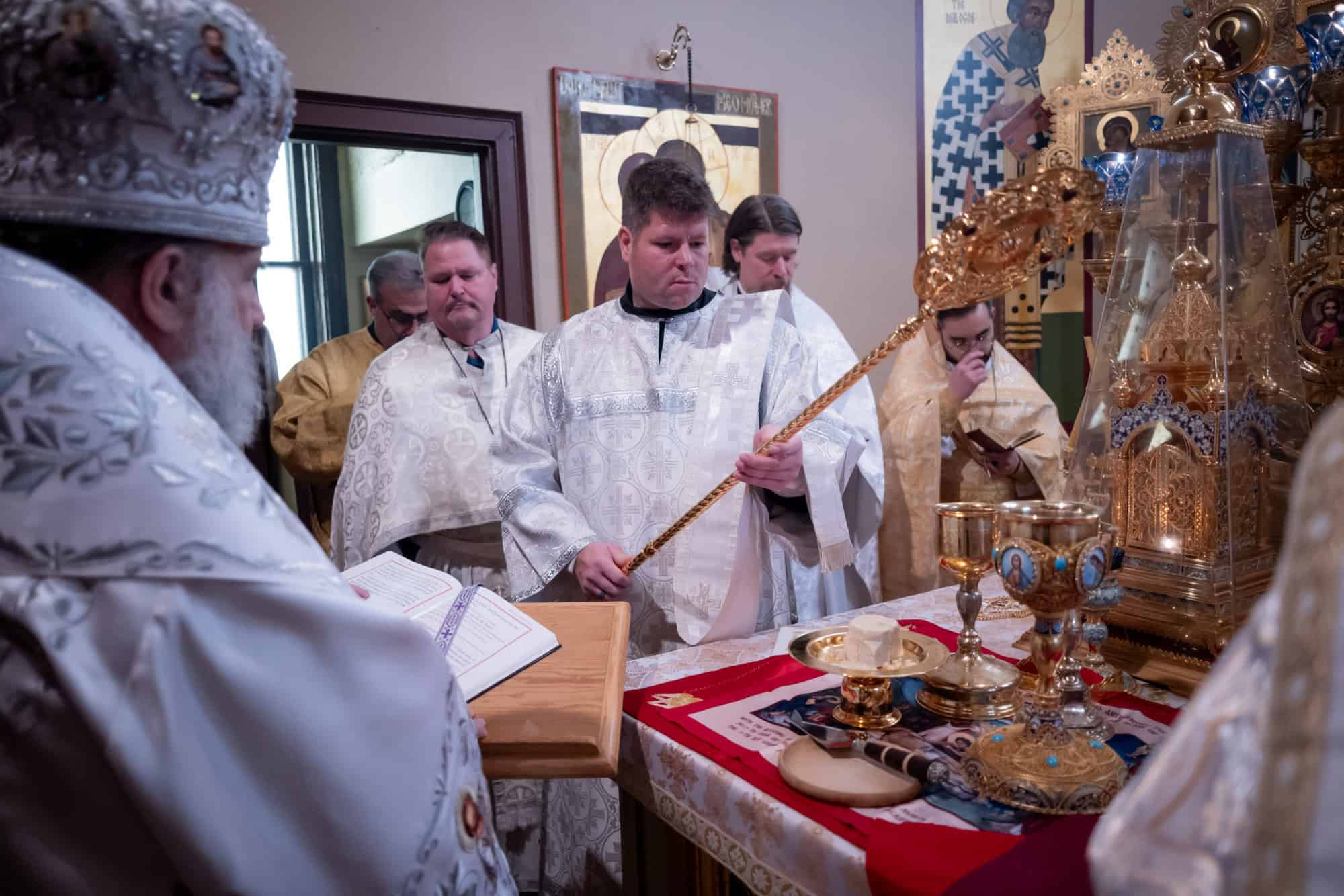 On Tuesday morning, the Archbishop celebrated the Divine Liturgy with Priest Alexander Koranda, Archpriest Philip Lashbrook, Archpriest Justin Matthews, Priest Nikolai Lochmatow, Priest Mark Hodges, Priest Joshua Coolman, Priest John Reavis, and Deacons Paul, Timothy, Raphael Fadil, and Jarrod. The Cathedral Choir was directed by Reader Vladimir Lymar.