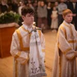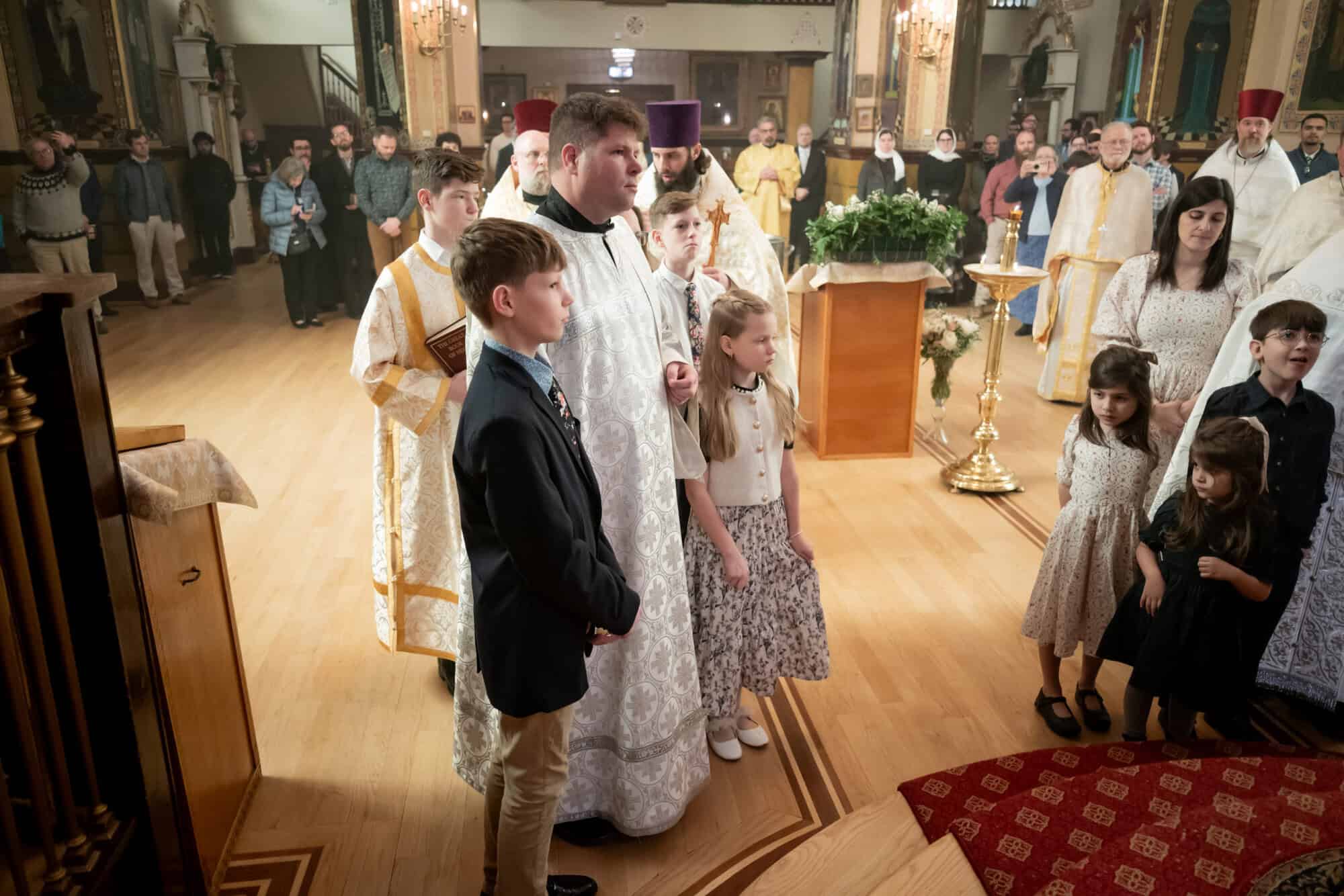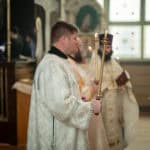 The Archbishop concluded the services by offering remarks to the newly ordained priest and deacon, along with their families. The Archbishop also welcomed the faithful from St. Vladimir’s Seminary and St. Stephen Church, Lima, OH, who traveled to Chicago to attend the ordinations. Following the Prayers of Thanksgiving, a reception was held in the parish hall.