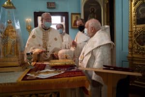 Concelebrating with Archbishop Paul at the Divine Liturgy on Bright Wednesday was Fr Paul Jannakos, Diocese of the Midwest Chancellor, together with Priest Alexander Koranda, Cathedral Dean, Archpriest John Zdinak, Archpriest Paul Monkowski, Archpriest Matthew Butrie, and Priest Jonathan Lincoln.