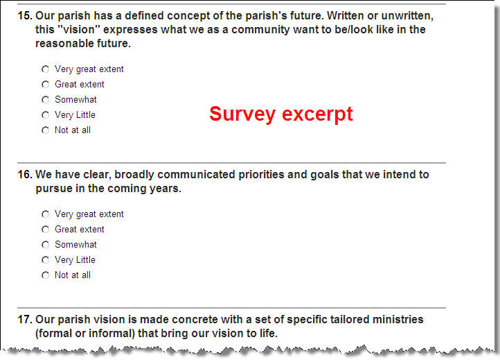 As an experiment we created an online survey version of a significant subset of the inventory. We tested it out with one willing parish. We are encouraged by the results.