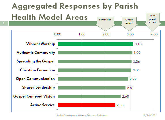 For this proof of concept parish the online results helped them to learn a variety of useful information. First, questions about worship scored high - confirming that parishioners really valued their worship life. This was a clear strength to build upon.